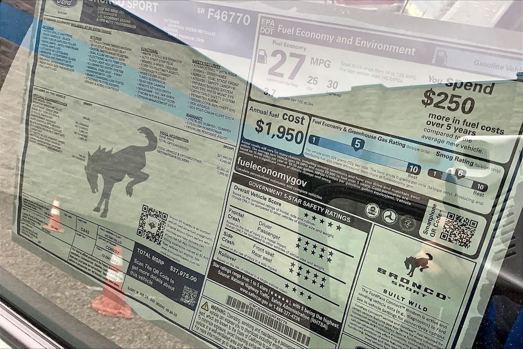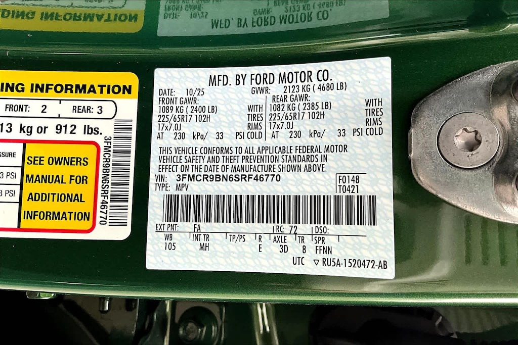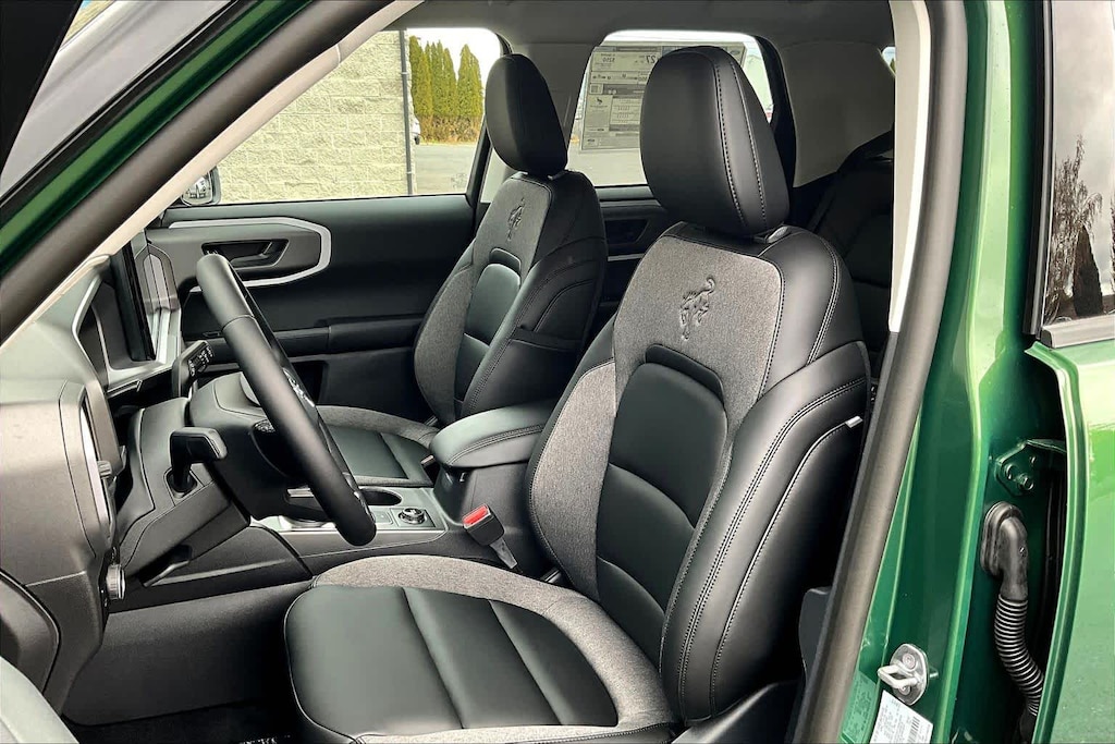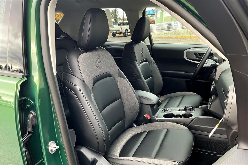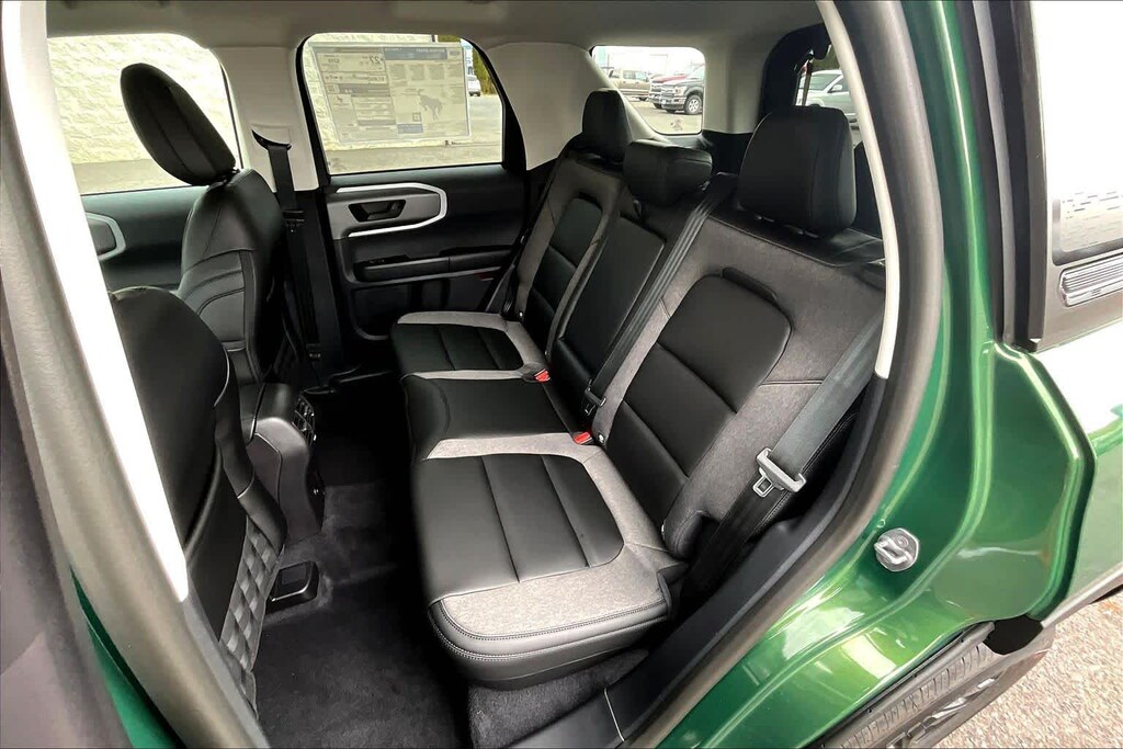 CONVENIENCE PACKAGE Heated 8-Way Power Drivers Seat, (Fore/aft, up/down, recline, lumbar), Front Driver/Passenger Seat Back Map Pockets, Universal Garage Door Opener (UGDO), Premium Wrapped Steering Wheel, LED Fog Lamps, BLACK APPEARANCE PACKAGE textured matte black hood graphic and unique badges w/black accents, Painted Shadow Black Roof, Cargo Mat, Wheels: 17 Matte Black-Painted Aluminum, Front & Rear Floor Liners w/o Carpet Mats, Liftgate w/Black BRONCO SPORT Lettering, modified smoke chrome Ford oval, Carbon Black Grille w/Black BRONCO Lettering, CARGO MANAGEMENT SYSTEM (SHELF/DIVIDER/TABLE). Ford Big Bend with Eruption Green exterior and Ebony interior features a 3 Cylinder Engine with 181 HP at 6000 RPM*.