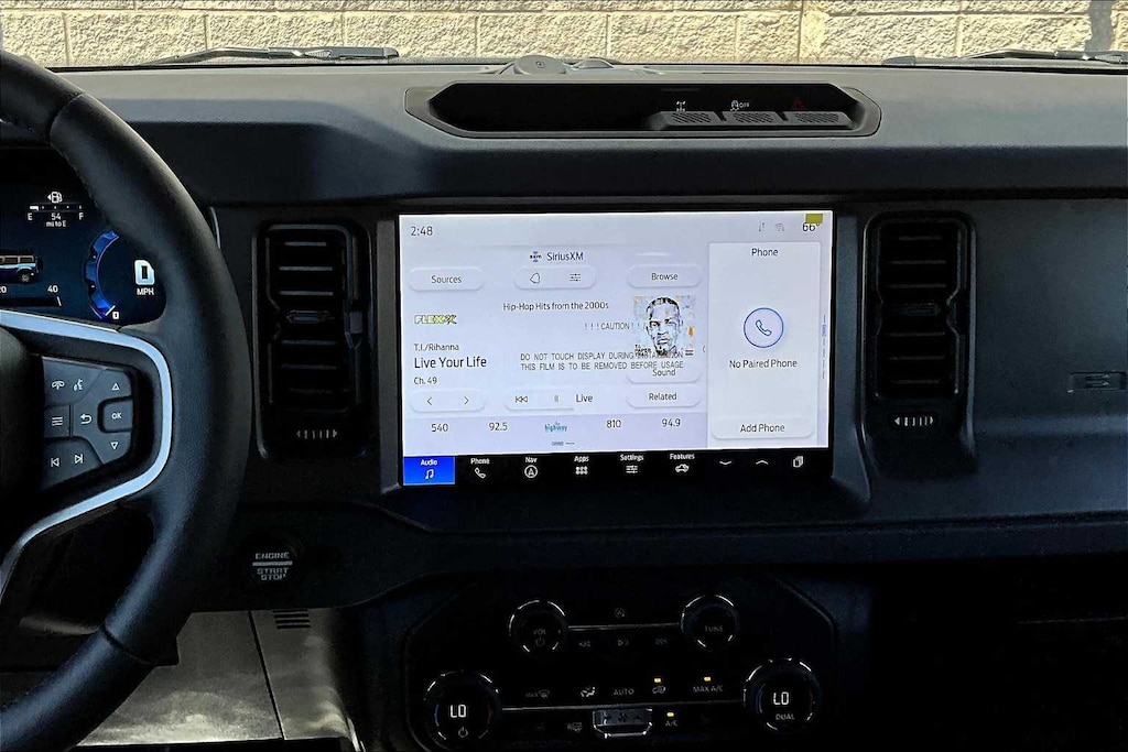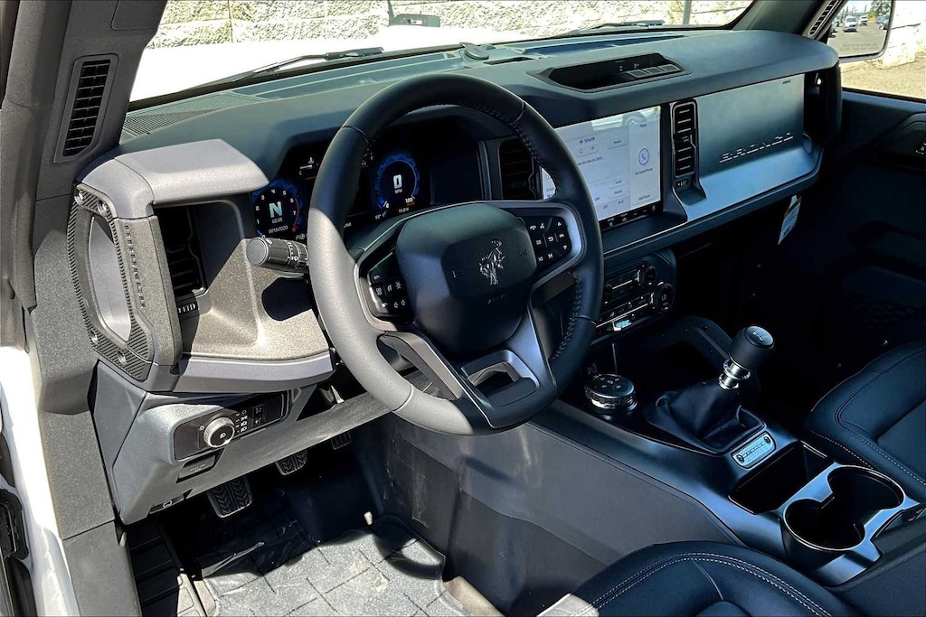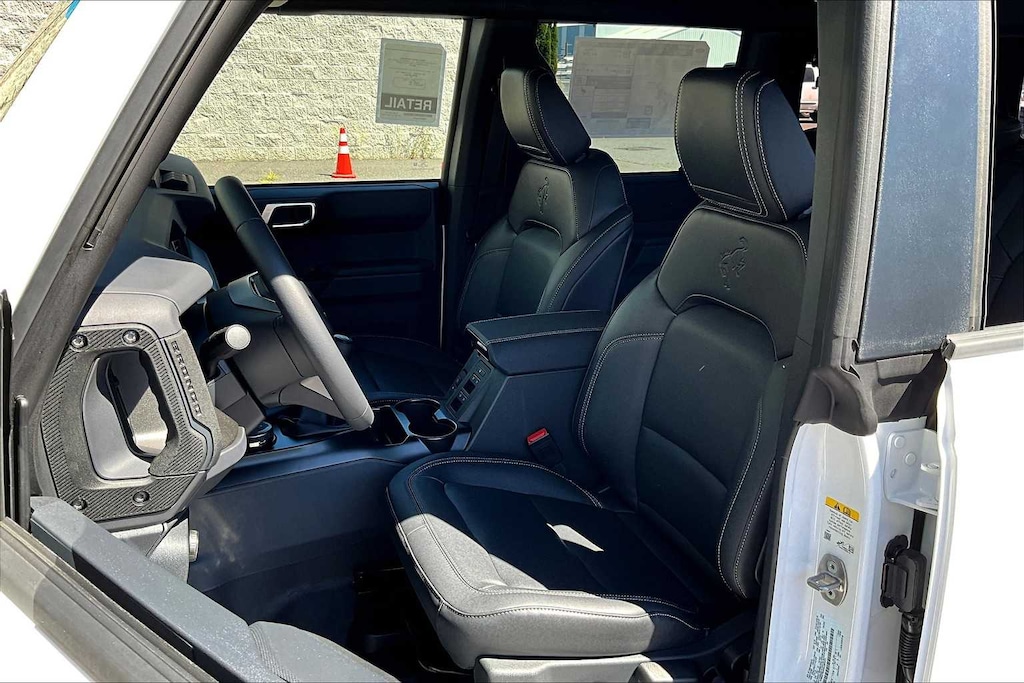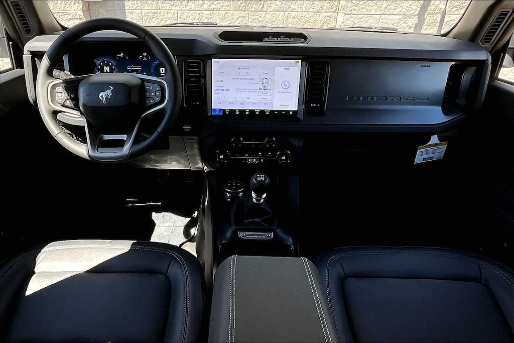 BLACK DIAMOND PACKAGE Advanced 4x4 w/automatic on demand engagement, front row interior grab handles - one in the center floor console passenger side, Rock Rails, Tires: LT265/70R17 All-Terrain, full size spare tire w/TPMS, 4.46 Final Drive Ratio w/Rear Locking Differential, Washout Capable Rubberized Flooring, drain plugs, Wheels: 17 Black High Gloss Painted Aluminum, Powder Coated Steel Front & Rear Bumpers, Full Vehicle Steel Bash Plates, Auxiliary Switches, pre-run accessory wires located in overhead console w/front map lights, LED Fog Lamps, EQUIPMENT GROUP 222A MID PACKAGE Rear Parking Sensors, Power Outlet - Back Side of Center Floor Console, Dual Smart Charging USB Ports, Front Row Heated Seats, Dr & Pass Illuminated Sliding Visor Vanity Mirrors, Dual-Zone Electronic Automatic Temperature Control, air conditioning, Ford Co-Pilot360, Enables compatibility w/FordPass performance app w/off-road navigation, Auto High-Beam Headlamps, Pre-Collision Assist w/Automatic Emergency Braking, pedestrian detection, forward collision warning and dynamic brake support, Blind Spot Information System (BLIS), Cross-Traffic Alert, Rear View Camera, backup assist grid lines, Lane-Keeping System, Lane-Keeping Alert, Lane-Keeping Aid and Driver Alert, Connected Navigation, 1-year subscription, pinch-to-zoom capability, live traffic, predictive. Ford Big Bend with Oxford White exterior and Black Onyx interior features a 4 Cylinder Engine with 275 HP at 5700 RPM*.