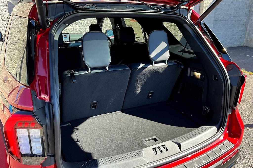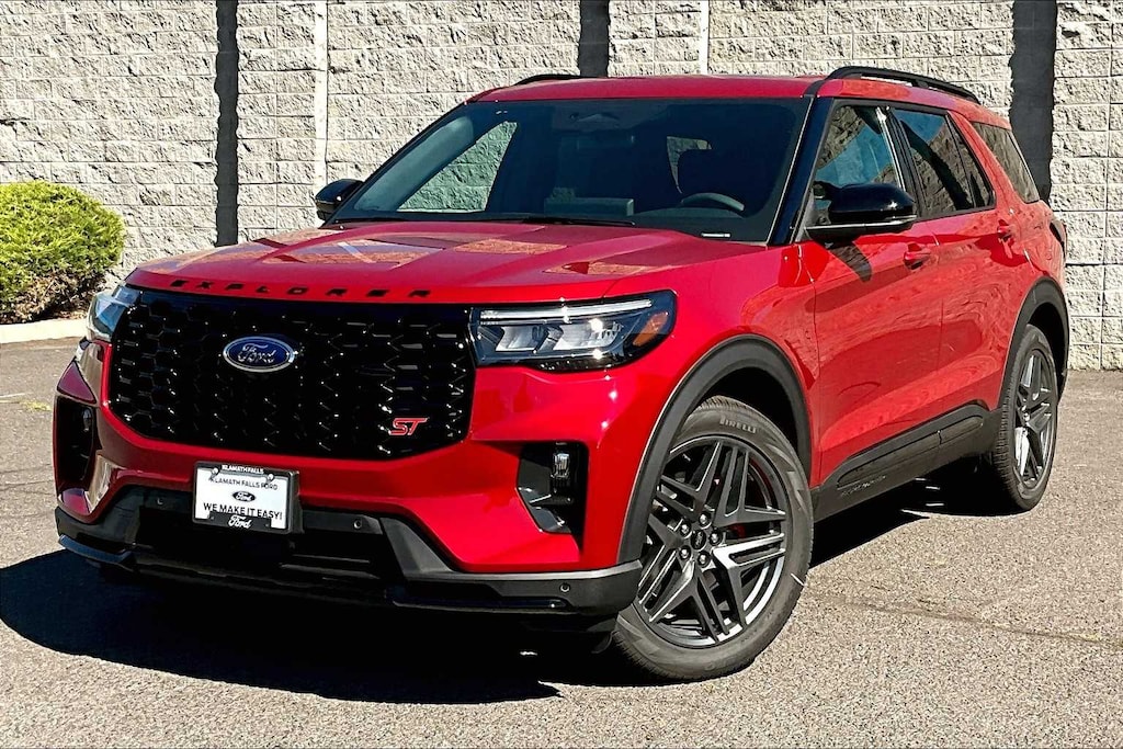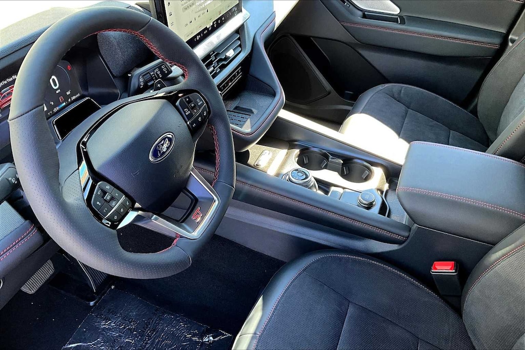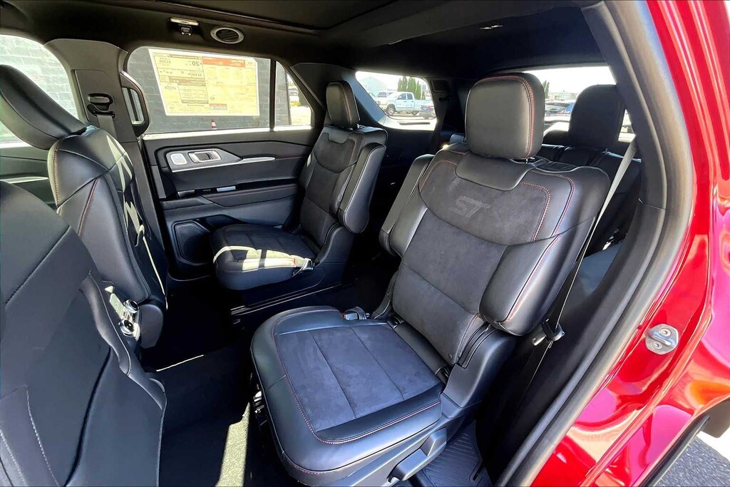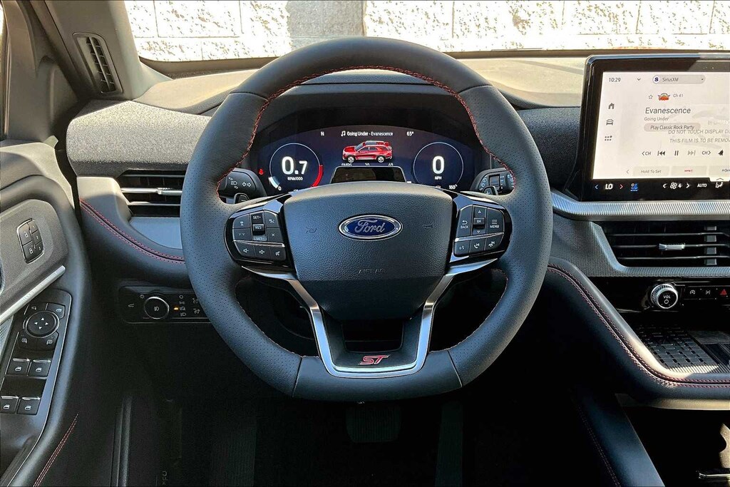 SUN AND SOUND PACKAGE Panoramic Vista Roof w/Power Shade, Multicontour Seats w/Front Active Motion, B&O Sound System by Bang & Olufsen, 980 watt and 14 speakers, SECURICODE KEYLESS ENTRY KEYPAD, 18 SPARE WHEEL & JACK KIT 18 spare tire, FRONT & 2ND ROWS FLOOR LINERS W/CARPET FLOOR MATS front and 2nd rows black carpet floor mats, TRANSMISSION: 10-SPEED AUTOMATIC SelectShift capability w/paddle shifters (STD). Ford ST with Rapid Red Metallic Tinted Clearcoat exterior and Onyx interior features a V6 Cylinder Engine with 400 HP at 5500 RPM*.