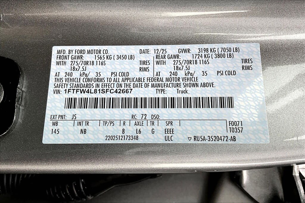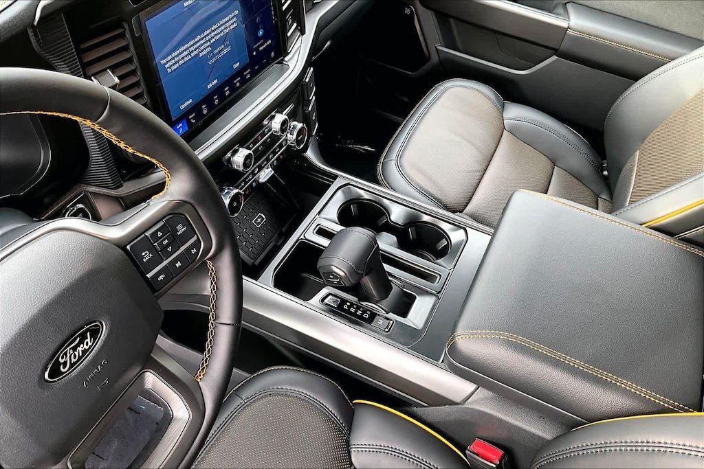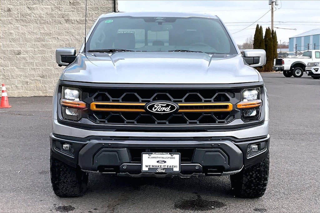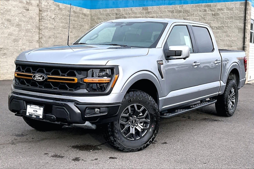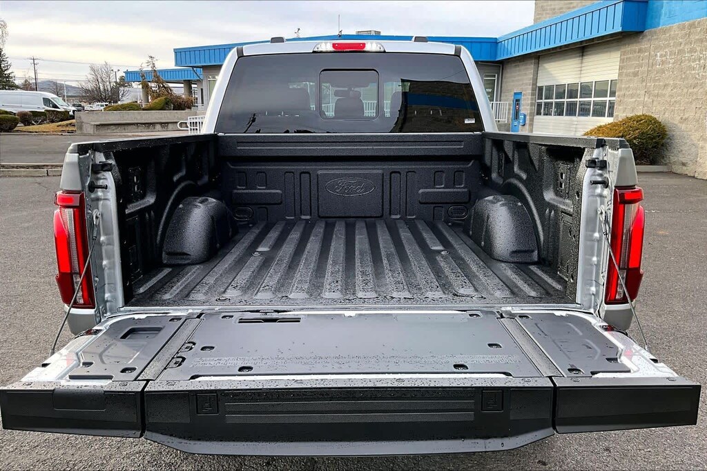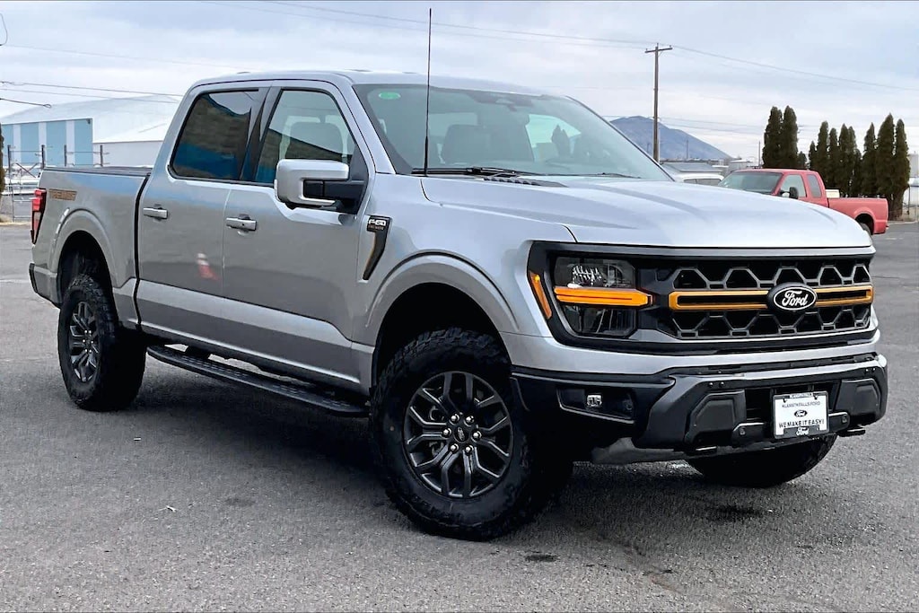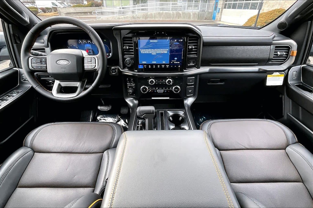 EQUIPMENT GROUP 402A HIGH Power-Adjustable Pedals w/Memory, Bed Utility Package, Tailgate Step w/Tailgate Work Surface, LED Box Lighting, Power Tailgate, 4 Pickup Box Tie-Down Plates, Premium Wrapped Steering Wheel, Modular Front Bumper & Carbon Black Rear Bumper, Mobile Office Package, Wireless Charging, Partitioned Lockable Rear Storage, Console Worksurface, Media Bin Door, Hi-Lock Transfer Case, Power Glass Heated Sideview Mirrors, power-folding, turn signal, auto-dimming feature (drivers side), high-intensity LED security approach lamps, LED sideview mirror spotlights and body-color skull caps, Auto-Dimming Rearview Mirror, Ambient Lighting, LED Taillamps, Two-Speed Automatic AWD w/Mechanical Locking 4WD, Radio: B&O Unleashed Sound System by Bang & Olufsen, HD Radio and 14 speakers, TOUGH BED SPRAY-IN BEDLINER, TRANSMISSION: ELECTRONIC 10-SPEED AUTOMATIC SelectShift w/progressive range select and selectable drive modes: normal, ECO, sport, tow/haul, slippery, deep snow/sand and mud/rut (STD). Ford Tremor with Iconic Silver exterior and Black interior features a 8 Cylinder Engine with 400 HP at 6000 RPM*.
