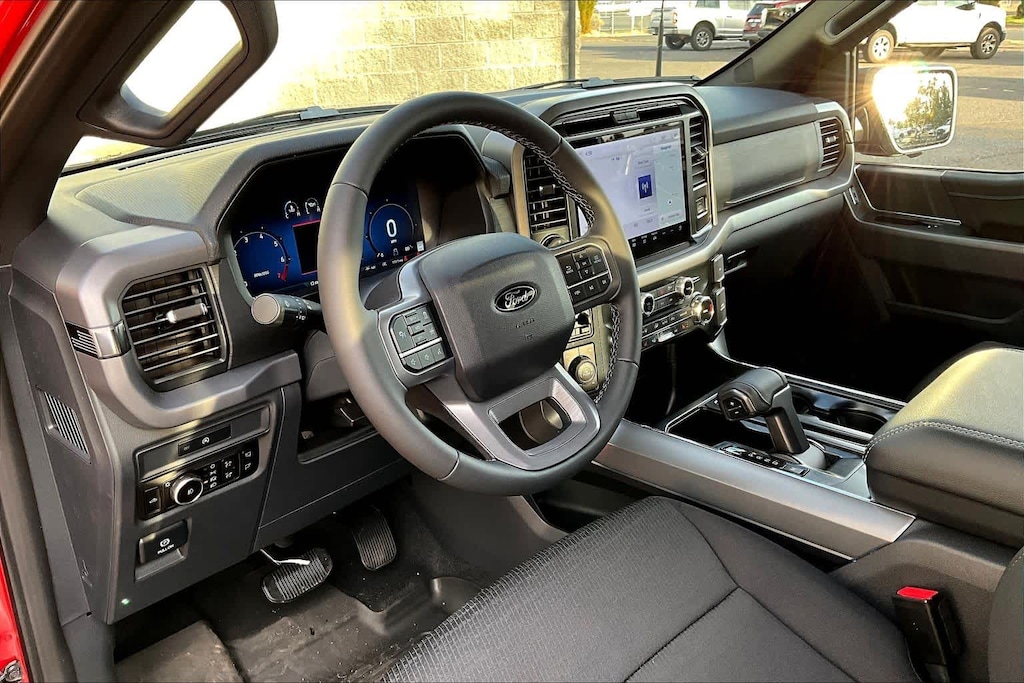EQUIPMENT GROUP 302A MID Chrome Door & Tailgate Handles, Wrapped Steering Wheel, Connected Navigation, 1-year trial, Navigation services require SYNC4 and FordPass Connect (optional on select vehicles), complimentary connect service and the FordPass app (see FordPass terms for details), Eligible vehicles receive a complimentary 1-year trial of navigation services that begins on the new vehicle warranty start date, Customers must unlock the navigation service trial by activating the eligible vehicle w/a FordPass member account, If not subscribed by the end of the complimentary period, the connected navigation service will revert to a moving-map and active routing will no longer be available, Connected service and features depend on compatible AT&T network availability, Evolving, ENGINE: 3.5L V6 ECOBOOST auto start-stop technology, 3.31 Axle Ratio, GVWR: 7,100 lbs Payload Package, XLT BLACK APPEARANCE PACKAGE PLUS Black Grille, Gray Box Side Decal, Black Exterior Badging, 6 Black Running Boards, Wheels: 20 Gloss Black Painted Aluminum, Tires: 275/60R20 BSW Automatic Transmission, Body-Color Front & Rear Bumpers, Dual Exhaust w/Black Tips, Dark Interior Appliques, Floor Shifter, ELECTRONIC LOCKING W/3.55 AXLE RATIO, TRANSMISSION: ELECTRONIC 10-SPEED AUTOMATIC SelectShift w/progressive range select and selectable drive modes: normal, ECO, sport, tow/haul, slippery, deep snow/sand and mud/rut (STD). Ford XLT with Rapid Red Metallic Tinted Clearcoat exterior and Black interior features a V6 Cylinder Engine with 325 HP at 5000 RPM*.
