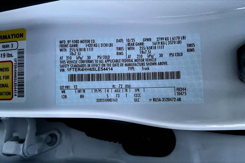 ADVANCED TOWING PACKAGE PLUS TECHNOLOGY PACKAGE Trailer Tow Package, towing capability up to TBD lbs and 4-pin/7-pin wiring harness, Class IV Trailer Hitch Receiver, 360-Degree Camera, Pro Trailer Backup Assist, Trailer Brake Controller, Rear Parking Sensors w/Trailer Guidance, Adaptive Cruise Control, speed sign recognition, Front Parking Sensors, EQUIPMENT GROUP 301A HIGH Power-Sliding Rear Window, Dual-Zone Electronic Climate Control (DEATC), 12 Display in Center Stack, FX4 OFF-ROAD PACKAGE FX4 Selectable Drive Modes, mud/ruts and sand, Exposed Steel Bash Plate, engine and transfer case shield and fuel tank guard, Electronic-Locking Rear Differential, Off-Road Tuned Shocks, Off-Road Screen in Center Stack, Trail Control, FX4 Off-Road Box Decal, BLACK APPEARANCE PACKAGE Black Center Bar & Surround Grille, Unique Carpet Mats, Wheels: 18 Black Painted, Tires: 18, Body-Color Painted Front Fascia, black lower valance, Front & Rear Black Ford Ovals, Black Rear Bumper, Painted Body-Color Wheel Lip Molding, TRANSMISSION: ELECTRONIC 10-SPEED AUTOMATIC selectable drive modes: normal, ECO, sport, tow/haul and slippery (STD). Ford XLT with Oxford White exterior and Ebony interior features a 4 Cylinder Engine with 270 HP at 5500 RPM*.