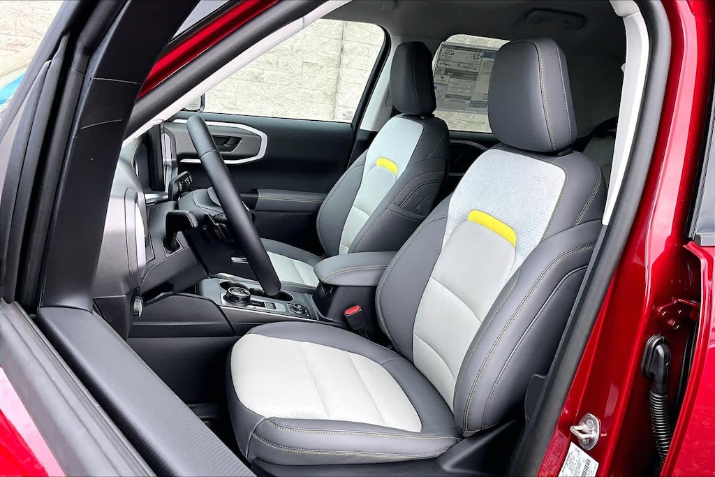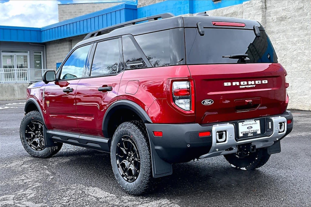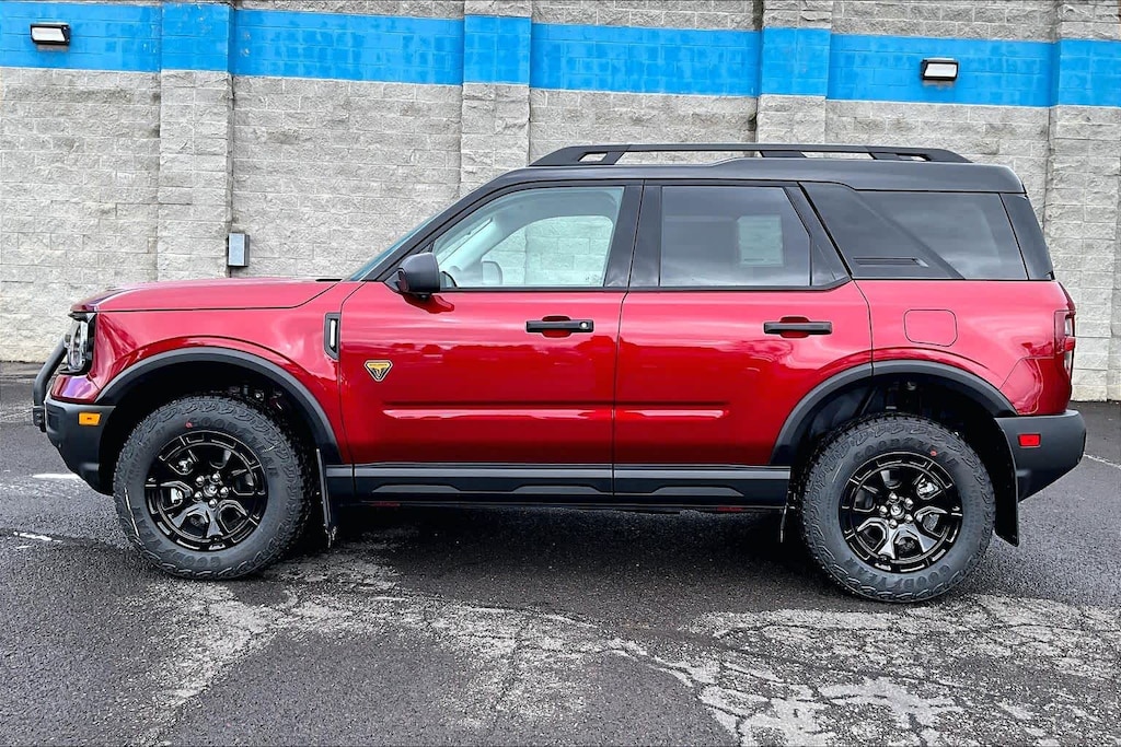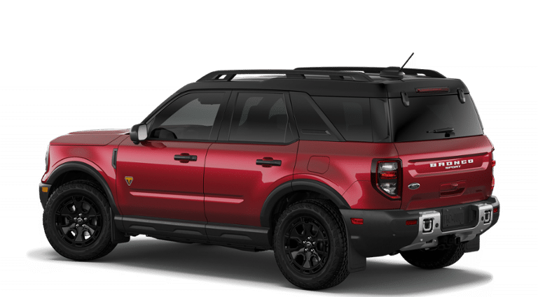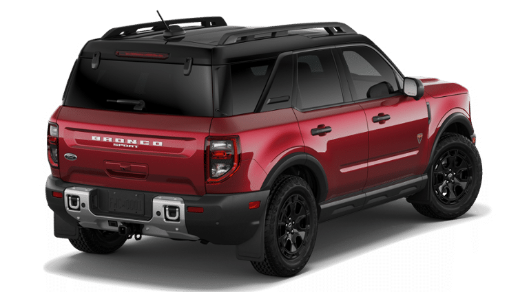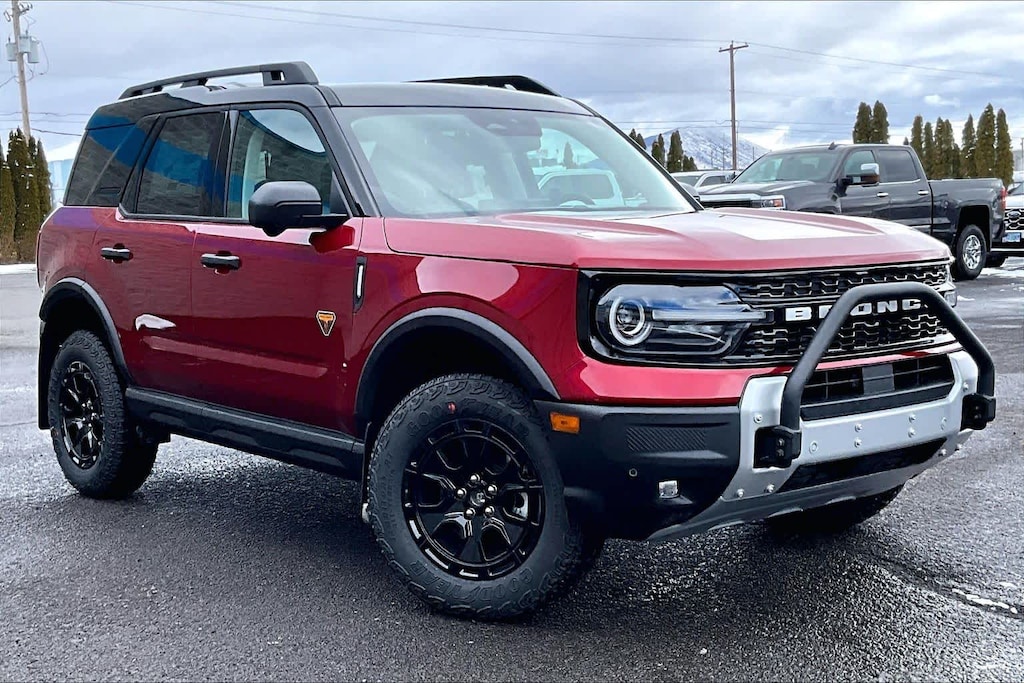 SASQUATCH BADLANDS PACKAGE Deletes overhead console w/sunglasses storage, dove gray seat inserts w/orchid yellow accents and stitching, Tires: P235/65R17 All-Terrain, High Clearance Fender Flares, 2 Rear D-Ring Recovery Hooks, Auxiliary Switches & Wiring, HOSS 3.0 Off-Road Suspension, rear Bilstein position sensitive dampers, Wheels: 17 Ebony Black-Painted Aluminum, Rear Black Bumpers w/Steel Plates, Molded-in-Color (MIC), 850W Engine Cooling Fan, BADLANDS TECH PACKAGE Noise Reduction Module, Radio: HD w/B&O Sound System by Bang & Olufsen, 10 speakers and subwoofer, Connected Navigation (1-Year Included), FORD CONNECTIVITY PACK (1-TIME PURCHASE - 7 YEARS) unlimited Wi-Fi hotspot, voice assistant and entertainment, Select option for a one-time purchase of Ford connectivity package, Ford connectivity package will be active for 7 years on this vehicle (non-transferrable to another VIN) from warranty start date, Requires activation via Ford app, Evolving technology/cellular networks/vehicle capability may limit functionality and prevent operation of connected features, Ford may temporarily slow data speeds if such data usage reaches or exceeds 50GB within a 30-day period or due to network limitations, If a customer uses more than 50% of their data usage in a roaming country during a 60-day period, Ford may remove or limit the customers data plan, SIRIUSXM W/360L (3-YEAR PLAN) Also referred to as an extended service subscription plan by SiriusXM, is included w/your newly purchased or leased vehicle will stop at the end of the subscription period unless you decide to continue service, Plan is non-transferable and non-refundable, If you do not wish to enjoy your subscription, you can cancel by calling the number below, All SiriusXM services require a subscription, each sold separately by SiriusXM after the service term, Service subject to the SiriusXM customer agreement and privacy policy, visit siriusxm.com for complete terms and how to cancel which includes online methods or calling 1-866-635-2349, Some services and features are subject to device capabilities and location availability, Satellite service not available in Alaska and, CARGO MANAGEMENT SYSTEM (SHELF/DIVIDER/TABLE). Ford Badlands with Ruby Red Metallic Tinted Clearcoat exterior and Dark Space Gray interior features a 4 Cylinder Engine with 250 HP at 5500 RPM*.