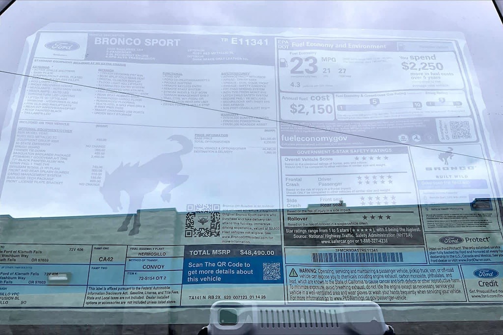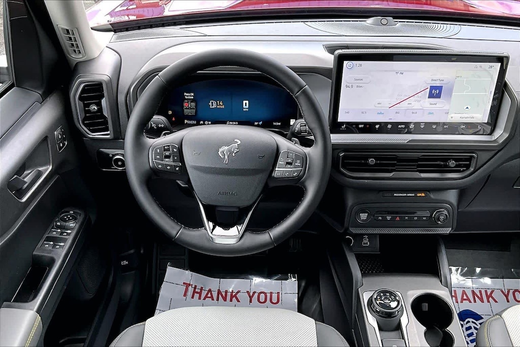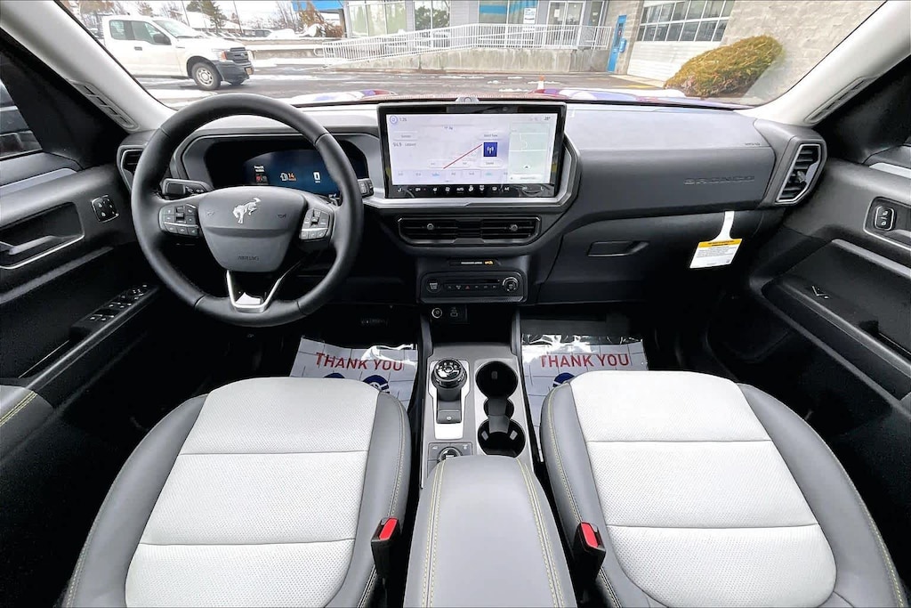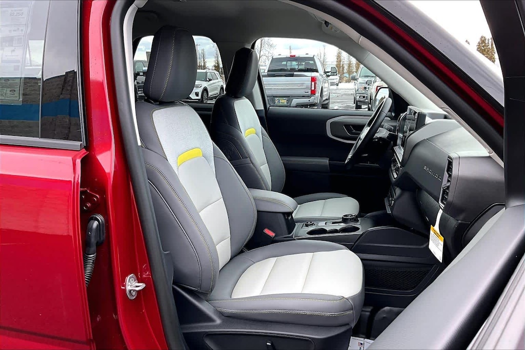 SASQUATCH BADLANDS PACKAGE Deletes overhead console w/sunglasses storage, dove gray seat inserts w/orchid yellow accents and stitching, Tires: P235/65R17 All-Terrain, High Clearance Fender Flares, 2 Rear D-Ring Recovery Hooks, Auxiliary Switches & Wiring, HOSS 3.0 Off-Road Suspension, rear Bilstein position sensitive dampers, Wheels: 17 Ebony Black-Painted Aluminum, Rear Black Bumpers w/Steel Plates, Molded-in-Color (MIC), 850W Engine Cooling Fan, BADLANDS TECH PACKAGE Noise Reduction Module, Radio: HD w/B&O Sound System by Bang & Olufsen, 10 speakers and subwoofer, Connected Navigation (1-Year Included), FORD CONNECTIVITY PACK (1-TIME PURCHASE - 7 YEARS) unlimited Wi-Fi hotspot, voice assistant and entertainment, Select option for a one-time purchase of Ford connectivity package, Ford connectivity package will be active for 7 years on this vehicle (non-transferrable to another VIN) from warranty start date, Requires activation via Ford app, Evolving technology/cellular networks/vehicle capability may limit functionality and prevent operation of connected features, Ford may temporarily slow data speeds if such data usage reaches or exceeds 50GB within a 30-day period or due to network limitations, If a customer uses more than 50% of their data usage in a roaming country during a 60-day period, Ford may remove or limit the customers data plan, SIRIUSXM W/360L (3-YEAR PLAN) Also referred to as an extended service subscription plan by SiriusXM, is included w/your newly purchased or leased vehicle will stop at the end of the subscription period unless you decide to continue service, Plan is non-transferable and non-refundable, If you do not wish to enjoy your subscription, you can cancel by calling the number below, All SiriusXM services require a subscription, each sold separately by SiriusXM after the service term, Service subject to the SiriusXM customer agreement and privacy policy, visit siriusxm.com for complete terms and how to cancel which includes online methods or calling 1-866-635-2349, Some services and features are subject to device capabilities and location availability, Satellite service not available in Alaska and, CARGO MANAGEMENT SYSTEM (SHELF/DIVIDER/TABLE). Ford Badlands with Ruby Red Metallic Tinted Clearcoat exterior and Dark Space Gray interior features a 4 Cylinder Engine with 250 HP at 5500 RPM*.