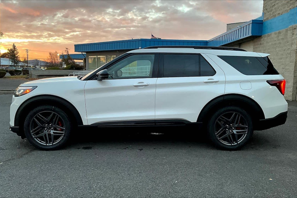 SUN AND SOUND PACKAGE Panoramic Fixed Glass Roof w/Power Shade, Remote Control Front Windows, Opens front windows from outside of the vehicle via the key fob, Multicontour Seats w/Front Active Motion, Front only, Radio: B&O Sound System by Bang & Olufsen w/51G, 980 watt and 14 speakers including subwoofer, SECURICODE KEYLESS ENTRY KEYPAD, 18 SPARE WHEEL & JACK KIT 18 spare tire, FRONT & 2ND ROWS FLOOR LINERS W/CARPET FLOOR MATS front and 2nd rows black carpet floor mats, TRANSMISSION: 10-SPEED AUTOMATIC SelectShift capability w/paddle shifters (STD). Ford ST with Star White Metallic Tri-Coat exterior and Onyx interior features a V6 Cylinder Engine with 400 HP at 5500 RPM*.