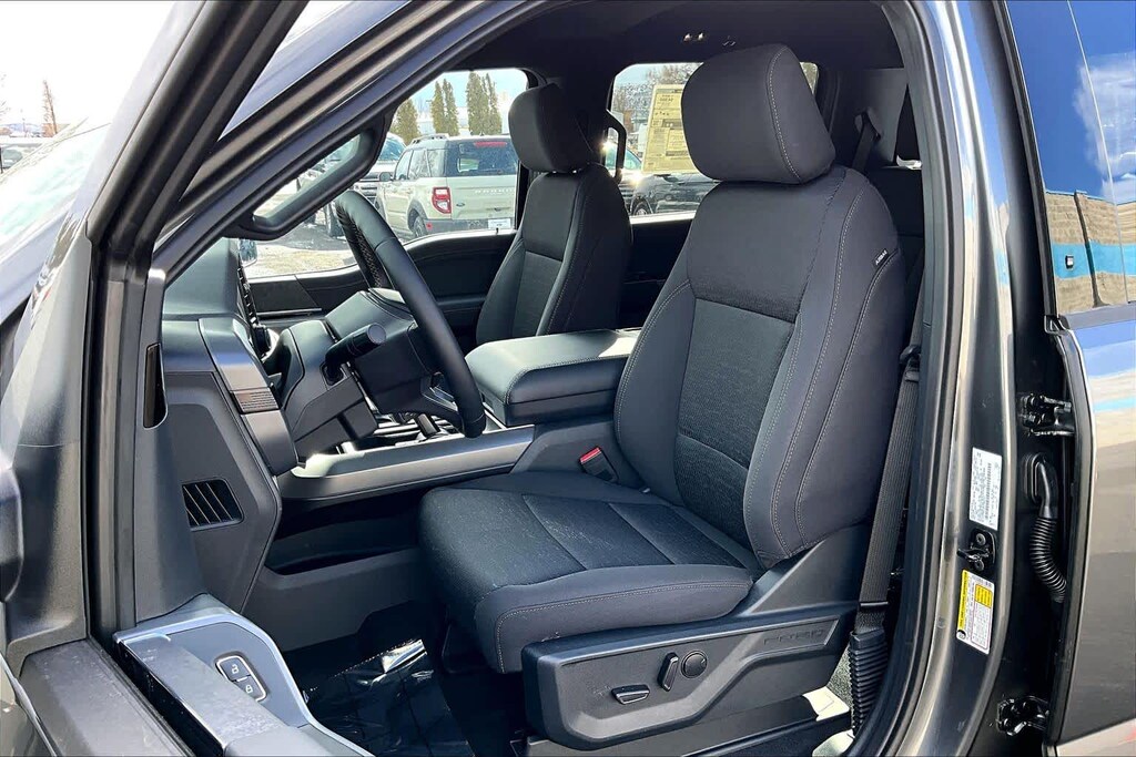 EQUIPMENT GROUP 302A MID Wrapped Steering Wheel, Intelligent Access w/Push Button Start, approach detection, 400W Pro Power Onboard (Cab & Bed), Dual-Zone Electronic Automatic Temperature Control, (DEATC), Power-Sliding Rear Window, Body-Color Door Handles, Remote Start System w/Remote Tailgate Release, Heated Front Seats, Chrome Front & Rear Bumpers, Ford Co-Pilot360 Assist 2.0, AEB oncoming, AEB Oncoming, Adaptive Cruise Control w/Stop & Go, lane centering and predictive speed assist, 360 Degree Camera, Front Parking Sensors, Towing Technology, pro trailer back up assist and pro trailer hitch assist, Power Glass Heated Sideview Mirrors, manual-folding, turn signals, high-intensity LED security approach lamps, LED sideview mirror spotlights and chrome skull caps, Auto-Dimming Rearview, XLT BLACK APPEARANCE PACKAGE Black Grille, Gray Box Side Decal, Black Exterior Badging, 6 Black Running Boards, Wheels: 18 Gloss Black, Body-Color Front & Rear Bumpers, Body-Color Door Handles, Dark Interior Appliques, Floor Shifter, ELECTRONIC LOCKING W/3.55 AXLE RATIO, TRANSMISSION: ELECTRONIC 10-SPEED AUTOMATIC SelectShift w/progressive range select and selectable drive modes: normal, ECO, sport, tow/haul, slippery, deep snow/sand and mud/rut (STD). Ford XLT with Carbonized Gray exterior and Black interior features a V6 Cylinder Engine with 400 HP at 6000 RPM*.