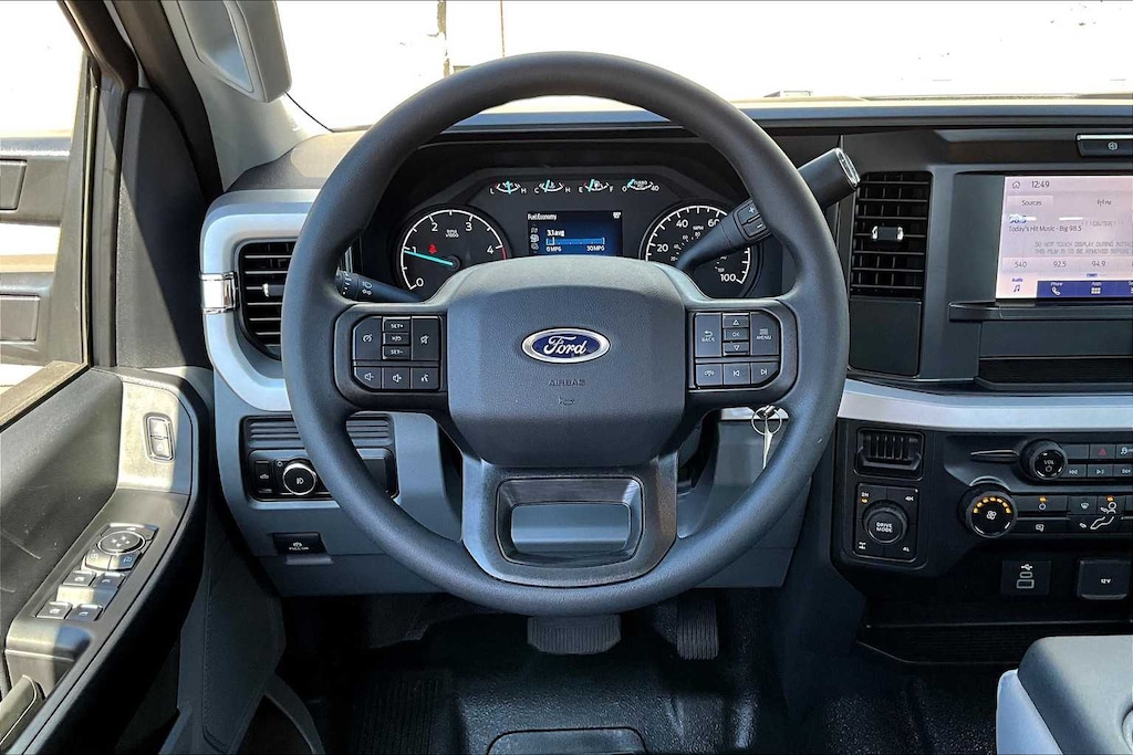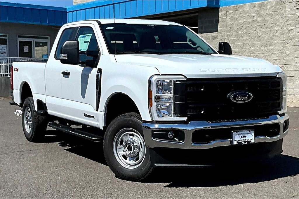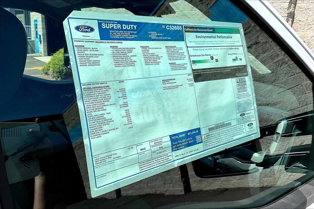 ENGINE: 6.7L 4V OHV POWER STROKE V8 TURBO DIESEL B20 manual push-button engine-exhaust braking and Operator Commanded Regeneration (OCR), 190 Amp Alternator (Diesel), 34 Gallon Fuel Tank, 3.31 Axle Ratio, Dual AGM 68 AH Battery, PLATFORM RUNNING BOARDS, ELECTRONIC-LOCKING W/3.31 AXLE RATIO, XL CHROME PACKAGE 4 pickup box tie-down plates, Halogen Fog Lamps, Bright Chrome Hub Covers & Center Ornaments, Chrome Rear Step Bumper, Chrome Front Bumper, TAILGATE STEP & HANDLE, REMOTE START SYSTEM, TRANSMISSION: TORQSHIFT 10-SPEED AUTOMATIC SelectShift and selectable drive modes: normal, eco, slippery roads, tow/haul and off-road. Ford XL with Oxford White exterior and Medium Dark Slate interior features a 8 Cylinder Engine with 475 HP at 2600 RPM*.