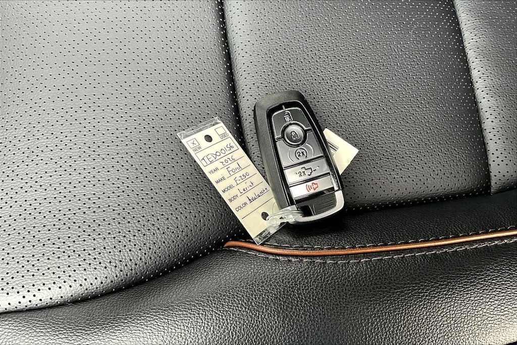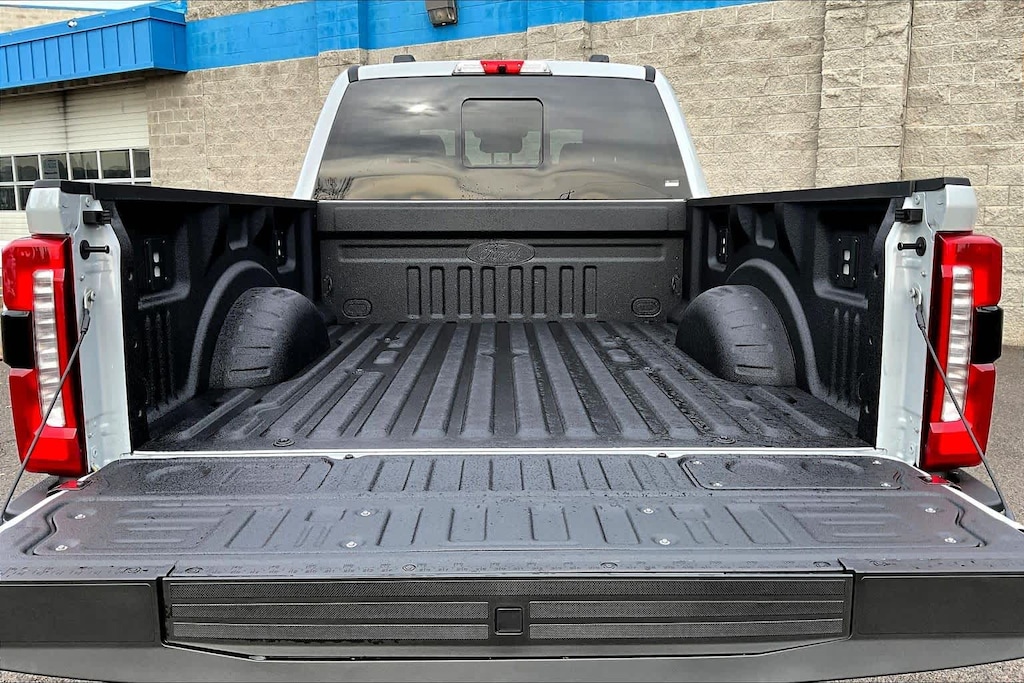 ENGINE: 6.7L 4V OHV POWER STROKE V8 TURBO DIESEL B20 manual push-button engine-exhaust braking and Operator Commanded Regeneration (OCR), 250 Amp Alternator, 34 Gallon Fuel Tank, 3.31 Axle Ratio, Dual AGM 68 AH Battery, TREMOR OFF-ROAD PACKAGE unique front springs - ride height increase, rear electronic locking differential, front limited slip differential, performance front and rear shock absorbers, unique front air dams w/approach angle improvement, transfer case and axle water fording vent tubes, rock crawl mode, trail control mode and trail turn assist, Tremor Off-Road Decal, Transfer Case & Fuel Tank Skid Plates, Tires: LT285/75R18E BSW Automatic Transmission, Off-road, LT285/75R18E BSW Spare Tire, Textured Matte Finish Off-Road Running Boards, Conventional Road Spare Wheel, Wheels: 18 Ebony Black Machined & Painted Aluminum, LARIAT ULTIMATE PACKAGE Tailgate Step & Handle, Head-Up Display, 4-Way Adjustable Headrests, Power-Deployable Running Boards, Radio: B&O Unleashed Sound System by Bang & Olufsen, HD Radio w/14 speakers including subwoofer, LARIAT PREMIUM PACKAGE Pro Trailer Hitch Assist, Ford Co-Pilot 360 Assist 2.0, 360-degree camera, rear view camera and reverse brake assist, Pre-Collision Assist, Automatic Emergency Braking (AEB), pedestrian detection, forward collision warning, dynamic brake support and intersection assist, Post-Collision Braking, Lane-Keeping System, lane-keeping alert, lane-keeping aid and driver alert, Front & Rear Parking Sensors, Automatic High Beam, Adaptive Cruise Control w/Stop-and-Go, lane centering and predictive speed assist, Power-Sliding Rear-Window w/Defrost, Pro Trailer Backup Assist, trailer reverse guidance, Lane Departure Warning, TOUGH BED SPRAY-IN BEDLINER tailgate-guard, black box bed tie-down hooks and black bed attachment bolts, TRANSMISSION: TORQSHIFT 10-SPEED AUTOMATIC SelectShift and selectable drive modes: normal, eco, slippery roads, tow/haul and off-road. Ford LARIAT with Avalanche Gray exterior and Black Onyx interior features a 8 Cylinder Engine with 475 HP at 2600 RPM*.