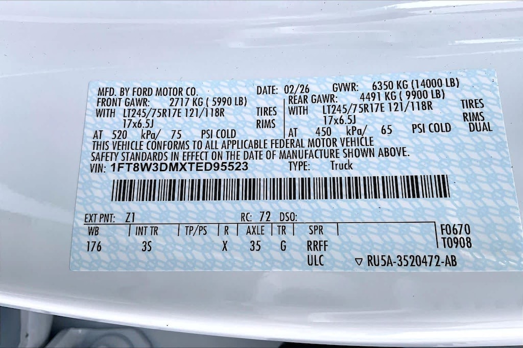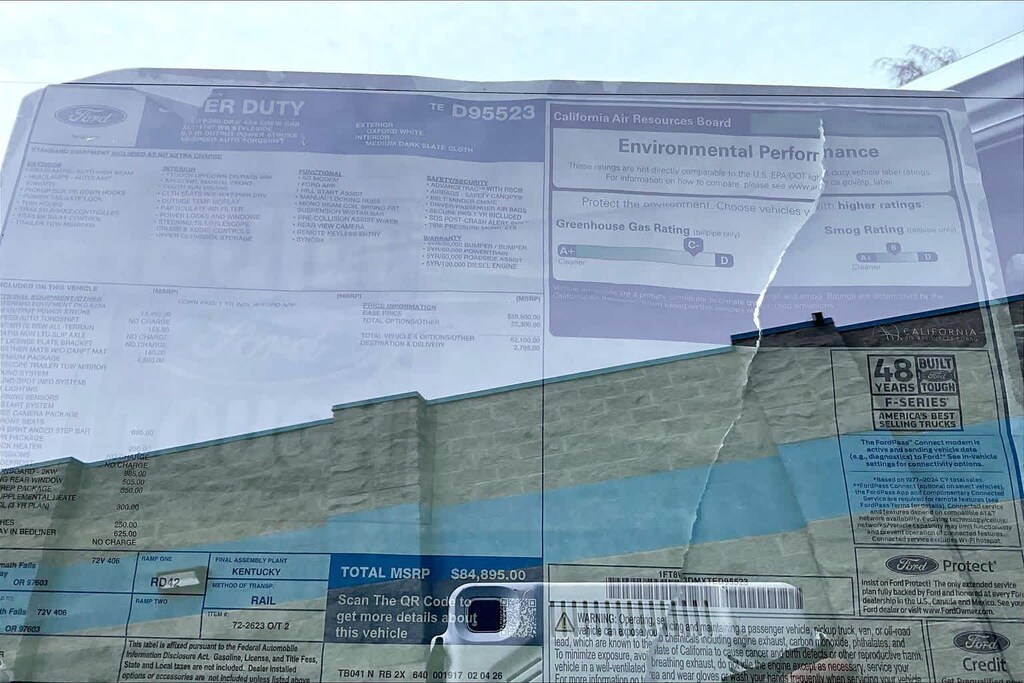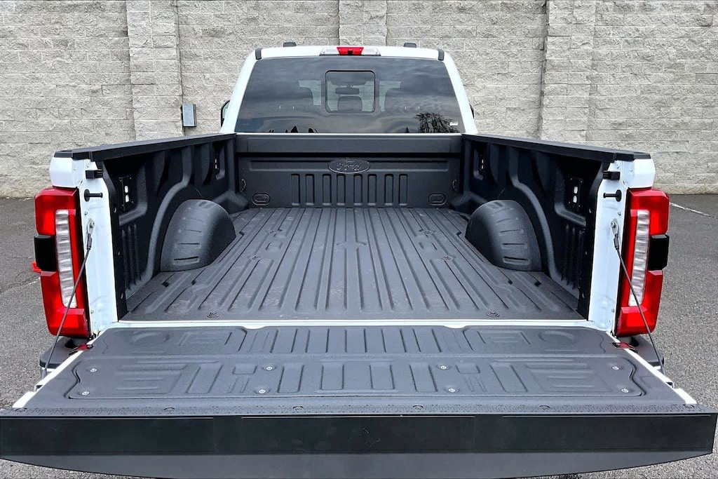 ENGINE: 6.7L HIGH OUTPUT POWER STROKE V8 DIESEL Turbo diesel B20, manual push-button engine-exhaust braking and Operator Commanded Regeneration (OCR), 48 Gallon Fuel Tank, 3.55 Axle Ratio, Dual AGM 68 AH Battery, XLT PREMIUM PACKAGE Electrochromic Self-Dimming Rearview Mirror, PowerScope Trailer Tow Mirrors w/Heat, power-folding w/Autofold, telescoping, power glass, turn signal, high-intensity LED security approach lamps and utility lighting system (LED side-mirror spotlights), LED Box Lighting, LED Center High-Mounted Stop Lamp (CHMSL), Remote Tailgate Release, Radio: B&O Sound System by Bang & Olufsen, HD Radio w/8 speakers including subwoofer, SYNC 4 w/Enhanced Voice Recognition, 12 center display, information on demand panel, wireless phone connection, cloud connected, AppLink w/app catalog, 911 Assist, Apple CarPlay® and Android Auto® compatibility, digital owners manual and conversational voice command recognition, SiriusXM w/360L, a 3-month trial subscription for all new SiriusXM-equipped, 6 ANGULAR BRIGHT ANODIZED STEP BARS, TOUGH BED SPRAY-IN BEDLINER tailgate-guard, black box bed tie-down hooks and black bed attachment bolts, TRANSMISSION: TORQSHIFT 10-SPEED AUTOMATIC SelectShift and selectable drive modes: normal, eco, slippery roads, tow/haul and off-road. Ford XLT with Oxford White exterior and Medium Dark Slate interior features a 8 Cylinder Engine with 500 HP at 2600 RPM*.