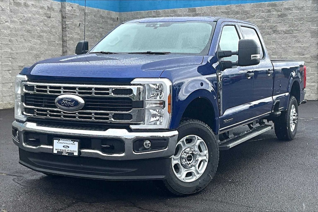 ENGINE: 6.7L 4V OHV POWER STROKE V8 TURBO DIESEL B20 manual push-button engine-exhaust braking and Operator Commanded Regeneration (OCR), 48 Gallon Fuel Tank, GVWR: 12,000 lb Payload Package, 3.31 Axle Ratio, Dual AGM 68 AH Battery, 6 ANGULAR BRIGHT ANODIZED STEP BARS, ELECTRONIC-LOCKING W/3.31 AXLE RATIO, POWERSCOPE TRAILER TOW MIRRORS W/HEAT power-folding w/Autofold, telescoping, power glass, turn signal, high intensity LED security approach lamps and utility lighting system (LED side-mirror spotlights), TIRES: LT275/70RX18E BSW Automatic Transmission (4) Spare may not be the same as road tire, TRANSMISSION: TORQSHIFT 10-SPEED AUTOMATIC SelectShift and selectable drive modes: normal, eco, slippery roads, tow/haul and off-road. Ford XLT with Argon Blue exterior and Medium Dark Slate interior features a 8 Cylinder Engine with 475 HP at 2600 RPM*.