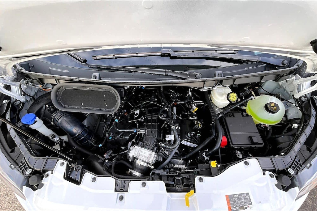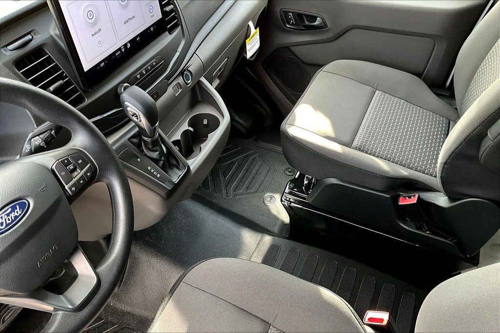 ENGINE: 3.5L ECOBOOST V6, DARK PALAZZO GRAY CLOTH BUCKET SEATS W/ARMRESTS 2-way manual driver seat w/lumbar and 2-way manual passenger seat, TRANSMISSION: 10-SPD AUTOMATIC W/OD & SELECTSHIFT auxiliary transmission oil cooler (STD). Ford Transit Cargo Van with Oxford White exterior and Dark Palazzo Gray interior features a V6 Cylinder Engine with 300 HP at 5000 RPM*.