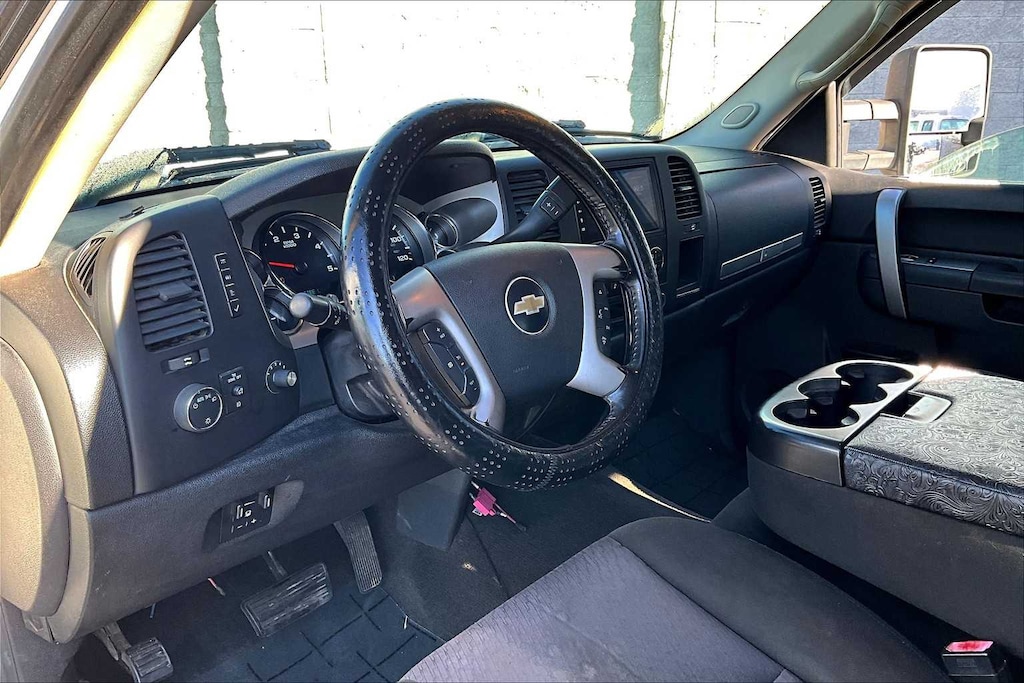 ENGINE, DURAMAX 6.6L TURBO DIESEL V8 B5-Diesel compatible (365 hp [271.7 kW] @ 3200 rpm, 660 lb-ft of torque [894.6 N-m] @ 1600 rpm), TRANSMISSION, ALLISON 1000 6-SPEED AUTOMATIC, ELECTRONICALLY CONTROLLED with overdrive, electronic engine grade braking and tow/haul mode, INTERIOR PLUS PACKAGE includes (AG1) driver 6-way power seat adjuster, (UK3) steering wheel-mounted audio controls, (UUI) AM/FM stereo with CD player and MP3 playback and (UPF) Bluetooth® for phone, EXTERIOR PLUS PACKAGE includes (AP3) remote vehicle starter system, (UG1) Universal Home Remote, (A60) locking tailgate, (PPA) EZ-Lift tailgate and (T96) fog lamps, TRAILERING EQUIPMENT, HEAVY-DUTY includes trailering hitch platform and 2.5-inch receiver with 2 adapter, 7-wire harness (harness includes wires for: park lamps, backup lamps, right turn, left turn, electric brake lead, battery and ground) with independent fused trailering circuits mated to a 7-way sealed connector, wiring harness for after-market trailer brake controller (located in the instrument panel harness) and (JL1) integrated trailer brake controller, MIRRORS, OUTSIDE HEATED POWER-ADJUSTABLE VERTICAL CAMPER MANUAL-FOLDING AND EXTENSION, BLACK includes integrated turn signal indicators consisting of 50 square inch flat mirror surface positioned over a 20 square inch convex mirror surface with a common head and lower convex spotter glass (convex glass is not heated or power adjustable), REMOTE VEHICLE STARTER SYSTEM includes Remote Keyless Entry, SEATS, FRONT 40/20/40 SPLIT-BENCH, 3-PASSENGER, DRIVER AND FRONT PASSENGER MANUAL RECLINING center fold-down armrest with storage, lockable storage compartment in seat cushion (includes auxiliary power outlet), adjustable outboard head restraints and storage pockets on Extended and Crew Cab models (STD), AUDIO SYSTEM, AM/FM STEREO WITH CD PLAYER AND MP3 PLAYBACK seek-and-scan, digital clock, auto-tone control, Radio Data System (RDS), automatic volume, TheftLock, auxiliary input jack, USB port and 36 cross-band presets