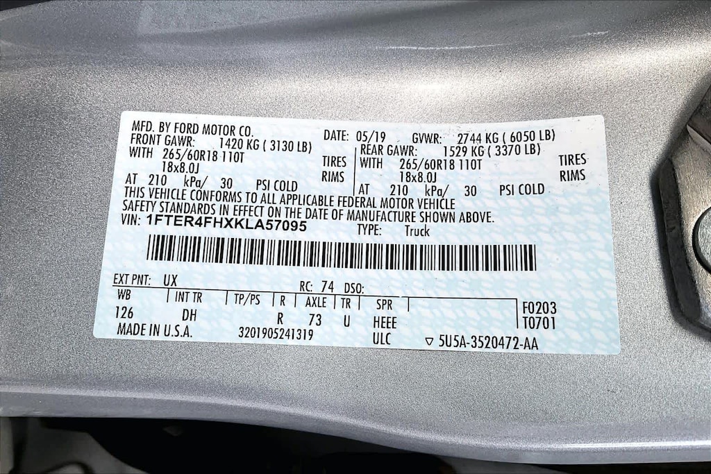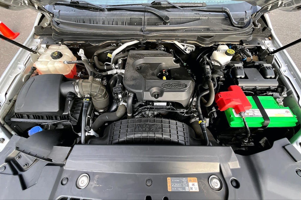 EQUIPMENT GROUP 501A MID Rain-Sensing Wipers, Remote Start, Technology Package, Adaptive Cruise Control, Navigation, Windshield Wiper De-Icer, Radio: B&O Sound System by Bang & Olufsen, 10 high-performance speakers and HD radio, FX4 OFF-ROAD PACKAGE exposed steel bash plate and remove front air dam, Terrain Management System, Trail Control, Electronic-Locking Rear Differential, Off-Road Screen in Cluster, Off-Road Tuned Suspension, Exposed Front Tow Hooks, 4x4 FX4 Off-Road Bodyside Decal, Skid Plates, fuel tank, transfer case and front differential, CHROME APPEARANCE PACKAGE Chrome Door & Tailgate Handles, Chrome Front & Rear Bumpers, Chrome Exhaust Tip, Wheels: 18 Chrome-Like PVD, Chrome Tow Hooks, Unique Chrome Grille, Chrome Mirror Caps, Body-Color Wheel-Lip Molding, TRAILER TOW PACKAGE towing capability up to 7500 lbs and 4-pin/7-pin wiring harness, Class IV Trailer Hitch Receiver, TRANSMISSION: ELECTRONIC 10-SPEED SELECTSHIFT AUTO (STD). Ford LARIAT with Ingot Silver exterior and Ebony interior features a 4 Cylinder Engine with 270 HP at 5500 RPM*.