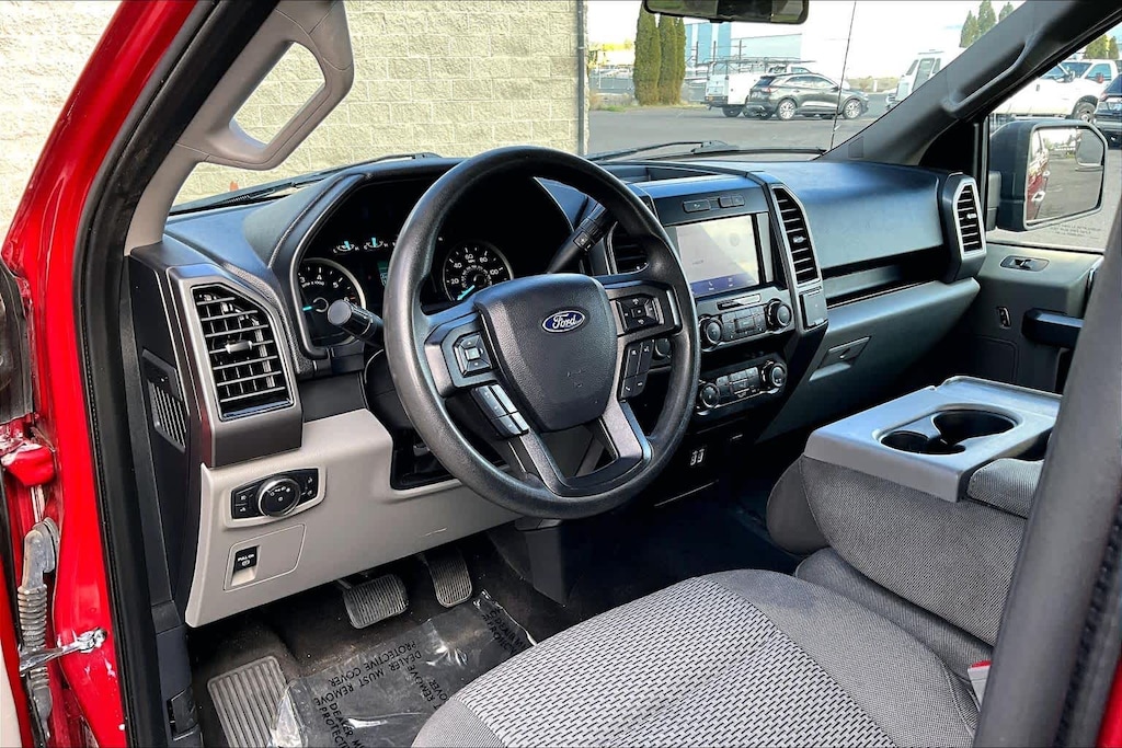 XLT CHROME APPEARANCE PACKAGE 2 chrome front tow hooks, Single-Tip Chrome Exhaust, Tires: P275/65R18 OWL Automatic Transmission, Chrome Door & Tailgate Handles w/Body-Color Bezel, bezel on side doors and black on tailgate, Wheels: 18 Chrome-Like PVD, 2-Bar Style Grille w/Chrome 2 Minor Bars, silver painted surround and black background mesh, Chrome Step Bars, ENGINE: 2.7L V6 ECOBOOST auto start-stop technology, 3.55 Axle Ratio, GVWR: 6,600 lbs Payload Package, REMOTE START SYSTEM, TRAY STYLE FLOOR LINER, CLASS IV TRAILER HITCH RECEIVER towing capability up to 6,000 lbs, on 3.3L V6 PFDI engine (99B) and 2.7L EcoBoost engine (99P) or up to 7,000 lbs, on 3.5L EcoBoost engine (994), 3.5L EcoBoost High Output engine (99G) and 5.0L V8 engine (995), smart trailer tow connector and 4-pin/7-pin wiring harness, TRANSMISSION: ELECTRONIC 10-SPEED AUTOMATIC selectable drive modes: normal/tow-haul/snow-wet/EcoSelect/sport. Ford XLT with Rapid Red Metallic Tinted Clearcoat exterior and Medium Earth Gray interior features a V6 Cylinder Engine with 290 HP at 6500 RPM*.