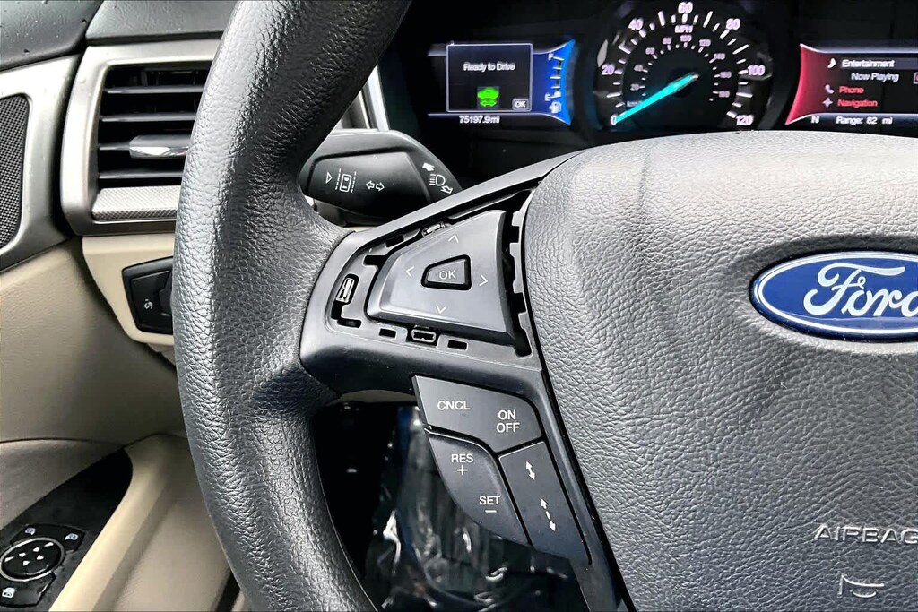 Navigation, Back-Up Camera, Hybrid MP3 Player, Onboard Communications System, Aluminum Wheels, Keyless Entry, Remote Trunk Release, Steering Wheel Controls, Child Safety Locks. Ford SE with Alto Blue Metallic Tinted Clearcoat exterior and Medium Light Stone interior features a 4 Cylinder Engine with 188 HP at 6000 RPM*.