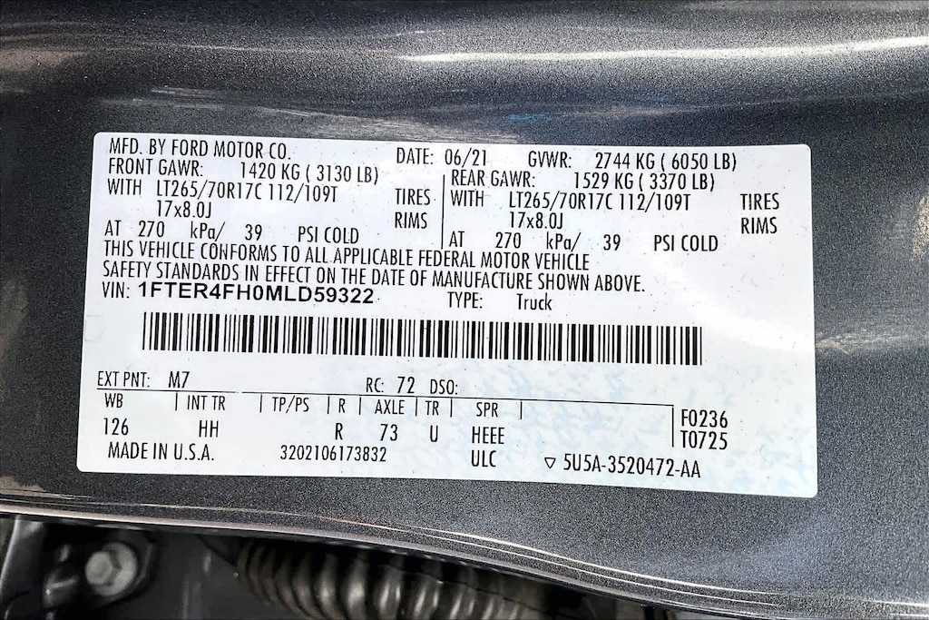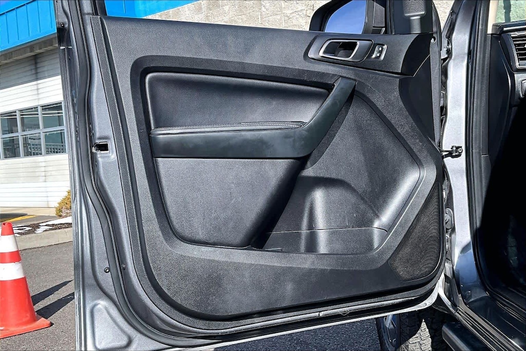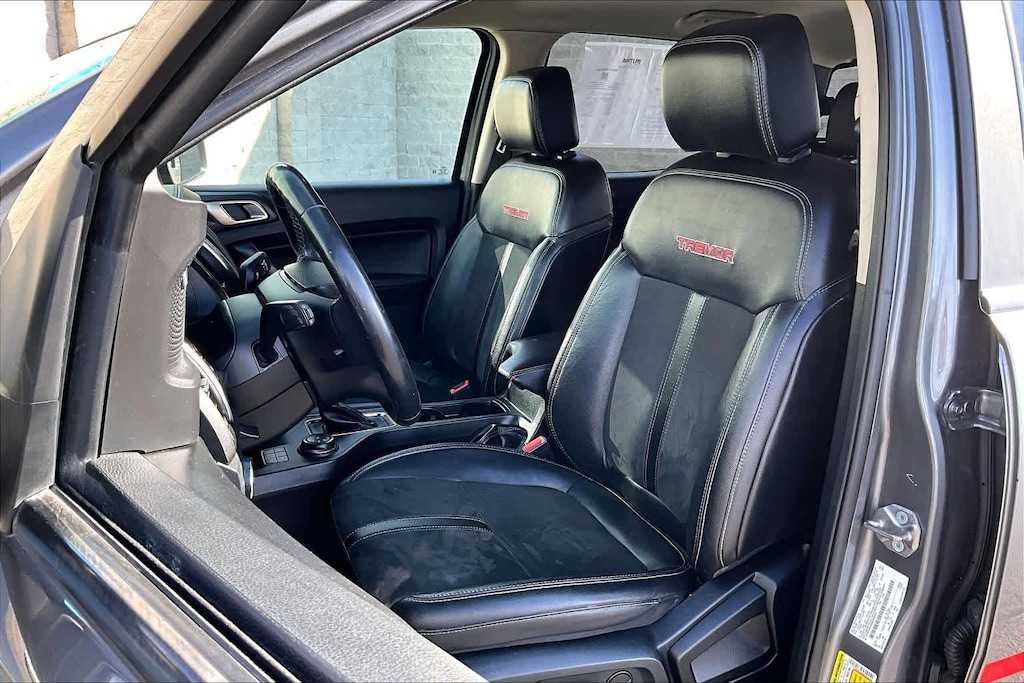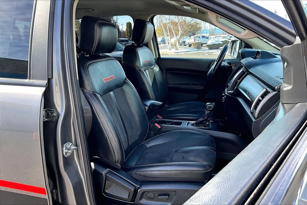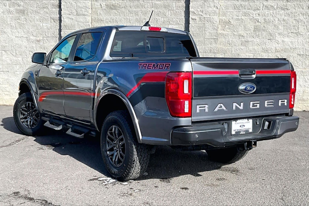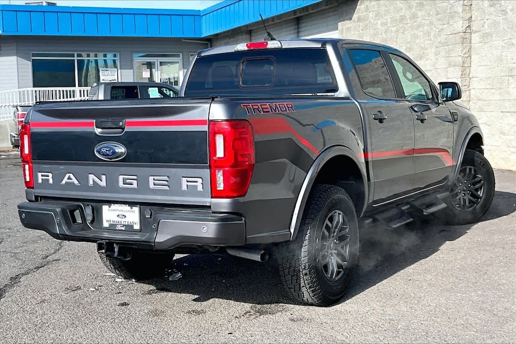 TREMOR OFF-ROAD PACKAGE black steel exposed bash plate, painted front fender grill and removes front air dam, Magnetic Front & Rear Bumper, Rear Tow Hooks, Upfitter Switches (6), Magnetic Wheel Arch Flare, Off-Road Tuned Suspension w/FOX Dampers, rear reservoirs, Tremor Box Decal, Black Off-Road Hoop Steps, Tires: LT265/70R17 Automatic Transmission, Terrain Management System, Trail Control, Electronic-Locking Rear Differential, Off-Road Screen in Cluster, Black Two Bar Style Grille, red accent nostrils and magnetic surround, Black Interior Accents, Wheels: 17 Magnetic Painted Aluminum, Trail Control, Tray Style Floor Liner w/Carpet Floor Mats, Skid Plates, radiator, electronic power-assist steering (EPAS), transfer case and fuel tank guard, EQUIPMENT GROUP 501A HIGH Rain-Sensing Wipers, Remote Start, Technology Package, forward sensing system, Forward Sensing System, Adaptive Cruise Control, Navigation, Radio: B&O Sound System by Bang & Olufsen, 10 speakers including subwoofer and HD Radio, TRAILER TOW PACKAGE towing capability up to TBD lbs and 4-pin/7-pin wiring harness, Class IV Trailer Hitch Receiver, TRANSMISSION: ELECTRONIC 10-SPEED SELECTSHIFT AUTO (STD). Ford LARIAT with Carbonized Gray exterior and Ebony interior features a 4 Cylinder Engine with 270 HP at 5500 RPM*.