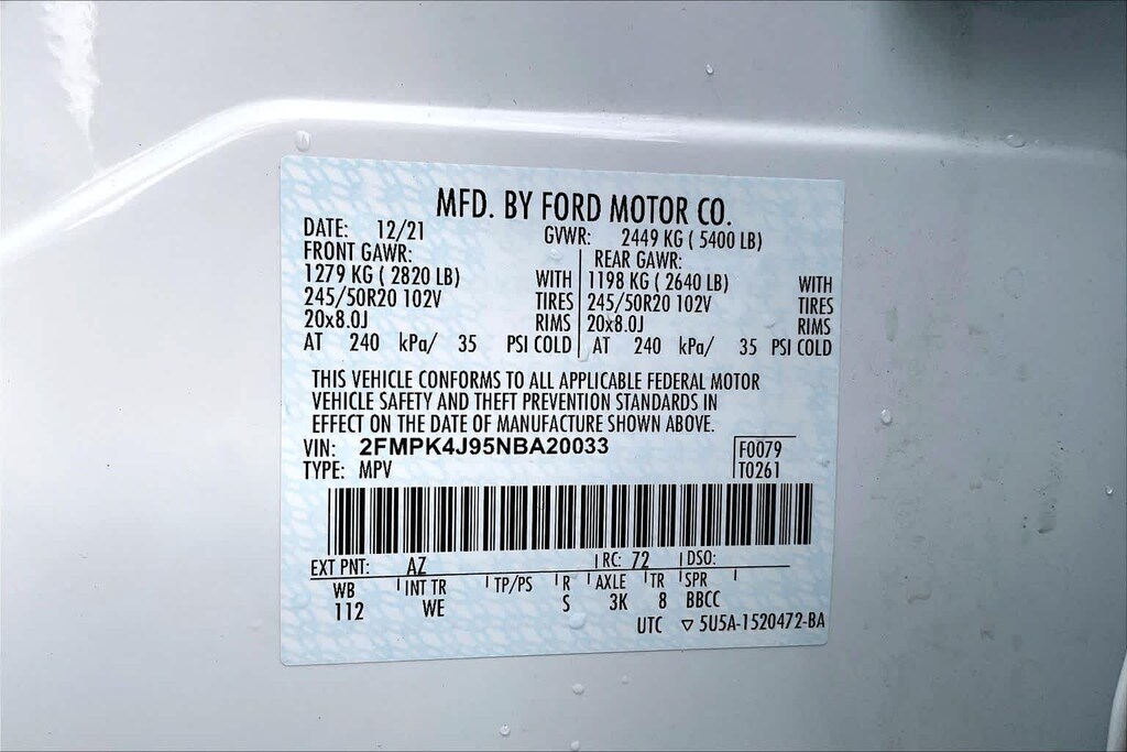 - Tire Pressure Monitoring System: Tire specific