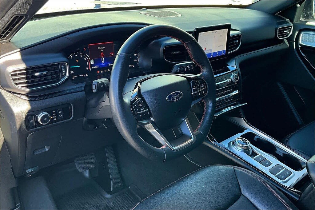 WHEELS: 21 ALUMINUM Tires: 21, CLASS IV TRAILER TOW PACKAGE, FRONT & SECOND ROW FLOOR LINERS (16B) standard front and second row black carpet floor mats w/red stitching, TRANSMISSION: 10-SPEED AUTOMATIC (STD). Ford ST-Line with Atlas Blue exterior and Ebony interior features a 4 Cylinder Engine with 300 HP at 5500 RPM*.