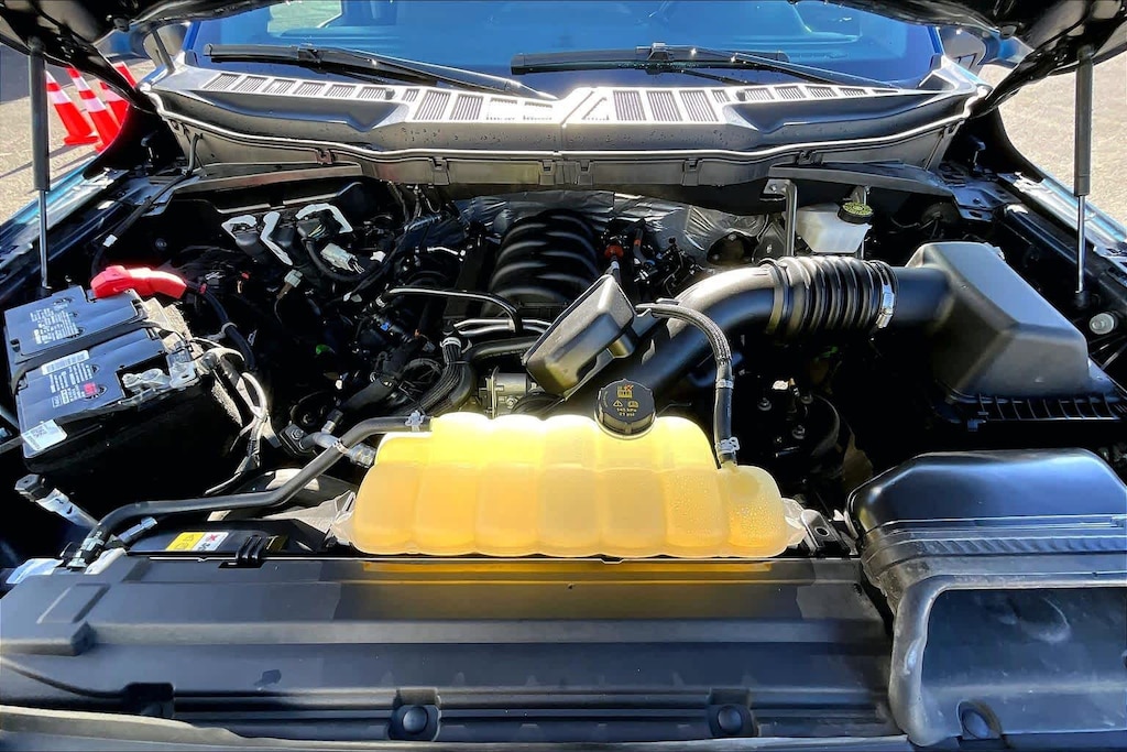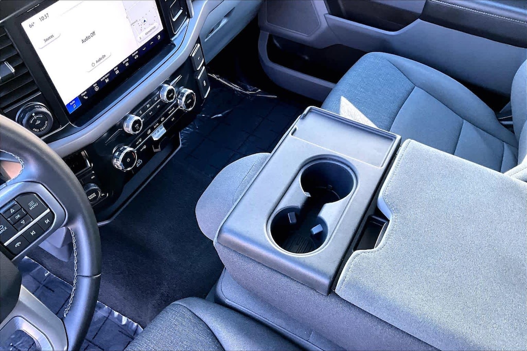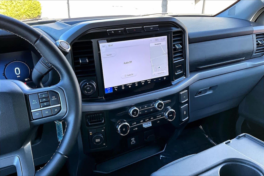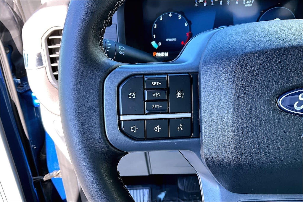 ENGINE: 5.0L V8 auto start-stop technology, 3.31 Axle Ratio, GVWR: 7,100 lbs Payload Package, TRANSMISSION: ELECTRONIC 10-SPEED AUTOMATIC SelectShift w/progressive range select and selectable drive modes: normal, ECO, sport, tow/haul, slippery, deep snow/sand and mud/rut (STD). Ford XLT with Atlas Blue exterior and Medium Dark Slate interior features a 8 Cylinder Engine with 325 HP at 5500 RPM*.