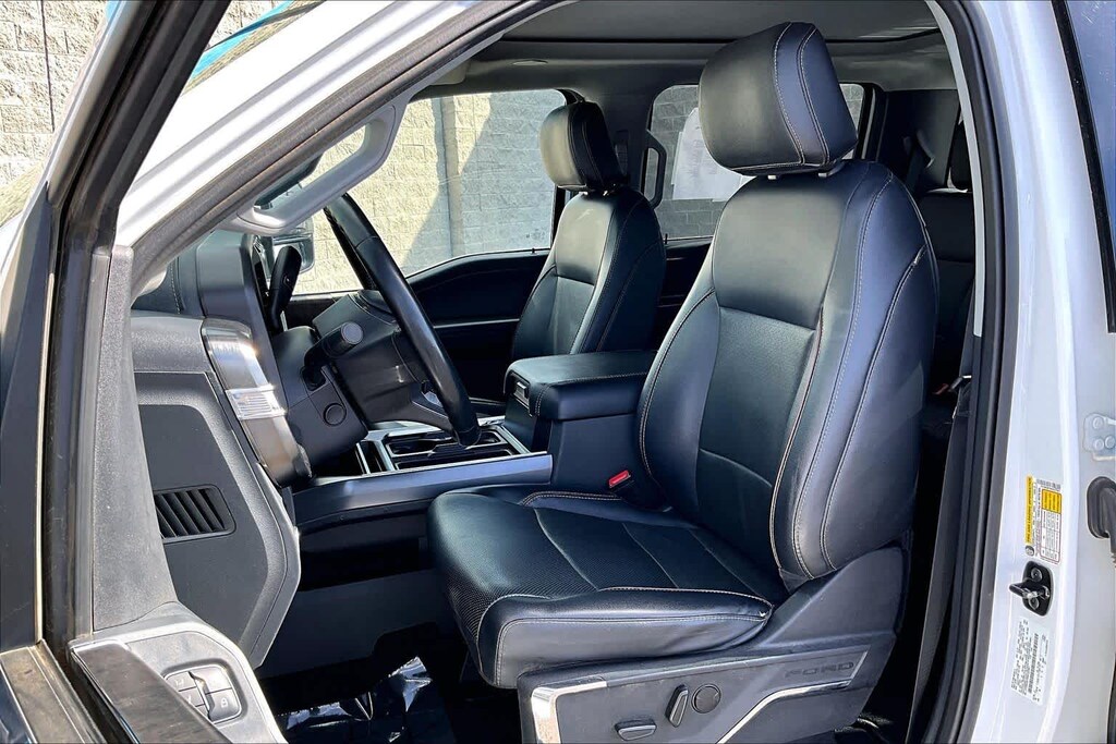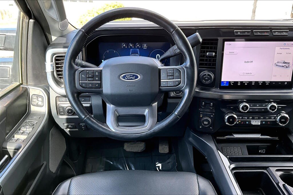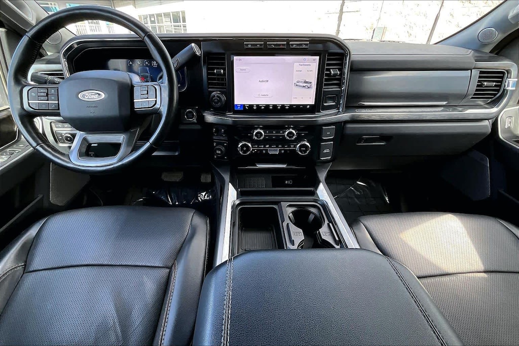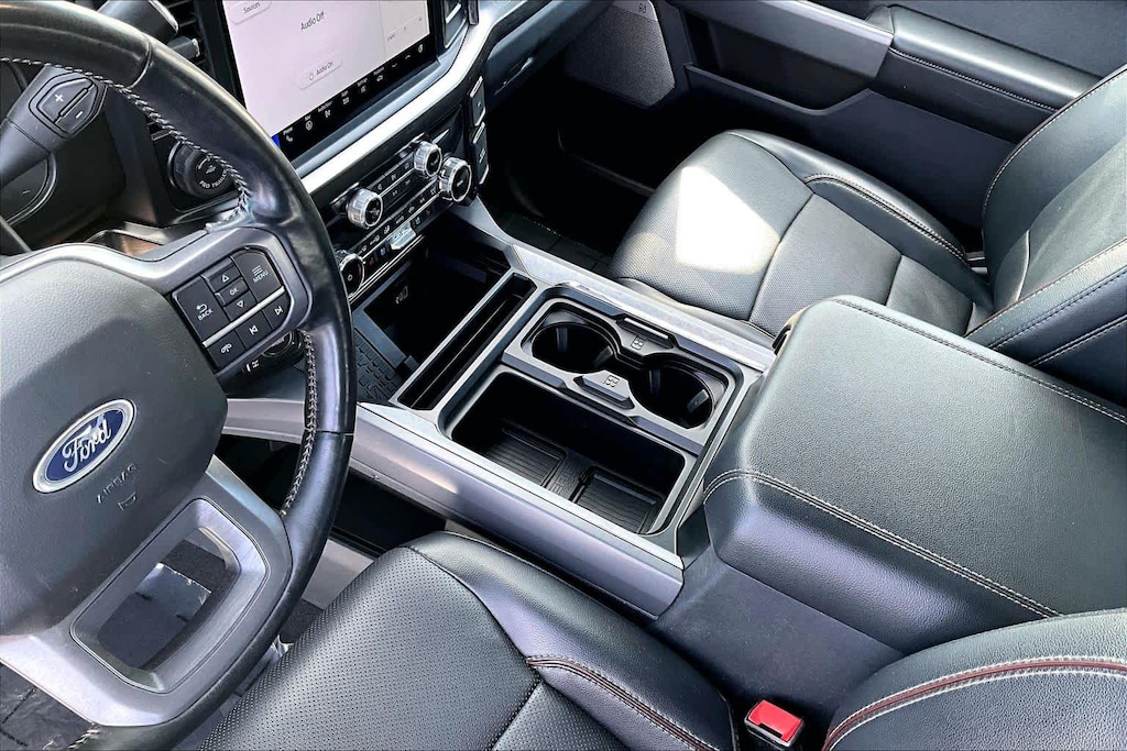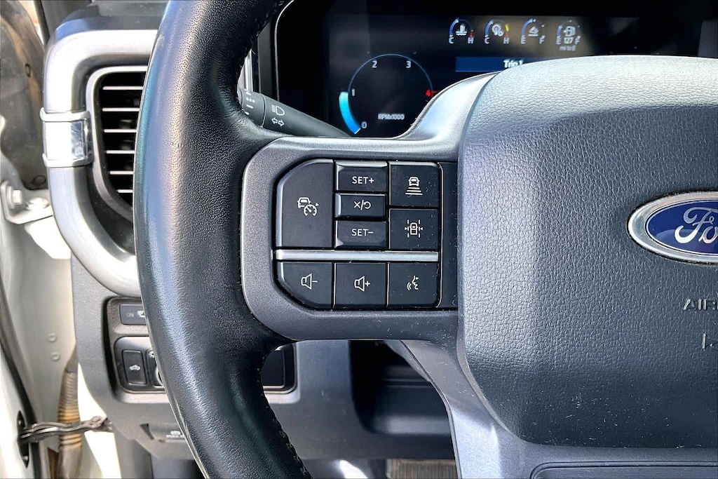 LARIAT ULTIMATE PACKAGE Wireless Charging Pad, Front Sensing System, Tailgate Step & Handle, Intelligent Adaptive Cruise Control w/Stop-and-Go, lane centering and speed sign recognition, Radio: B&O Unleashed Sound System by Bang & Olufsen, HD Radio w/14 speakers including subwoofer, Pro Trailer Hitch Assist, Ford Co-Pilot 360 2.0, rear view camera, reverse brake assist and reverse sensing system, Lane-Keeping System, lane-keeping alert, lane-keeping aid and driver alert, Pre-Collision Assist, Automatic Emergency Braking (AEB), pedestrian detection, forward collision warning, dynamic brake support and intersection assist, Post-Collision Braking, Automatic High Beam, BLIS w/Cross-Traffic Alert, trailer coverage, Upfitter Switches (6), Located in overhead console, 4-Way Adjustable Headrests, TWIN PANEL POWER MOONROOF map lights and moonroof switches, CHROME PACKAGE 2 front chrome tow hooks, Unique Chrome Mirror Caps, Tires: LT275/65Rx20E BSW Automatic Transmission (4), Spare may not be the same as road tire, Wheels: 20 Chrome PVD Aluminum, Chrome Door Handles, 6 Angular Bright Anodized Step Bars, Chrome Exhaust Tip, ELECTRONIC-LOCKING W/3.55 AXLE RATIO, TRANSMISSION: TORQSHIFT 10-SPEED AUTOMATIC SelectShift and selectable drive modes: normal, eco, slippery roads, tow/haul and off-road (STD). Ford LARIAT with Oxford White exterior and Black Onyx interior features a 8 Cylinder Engine with 430 HP at 5500 RPM*.