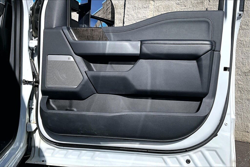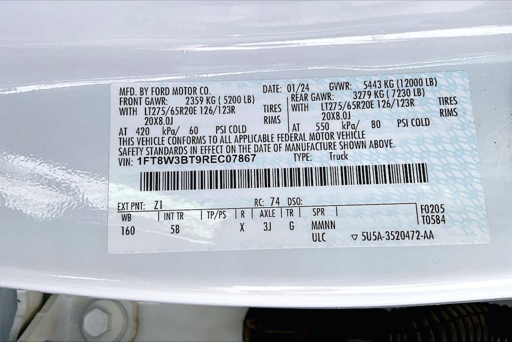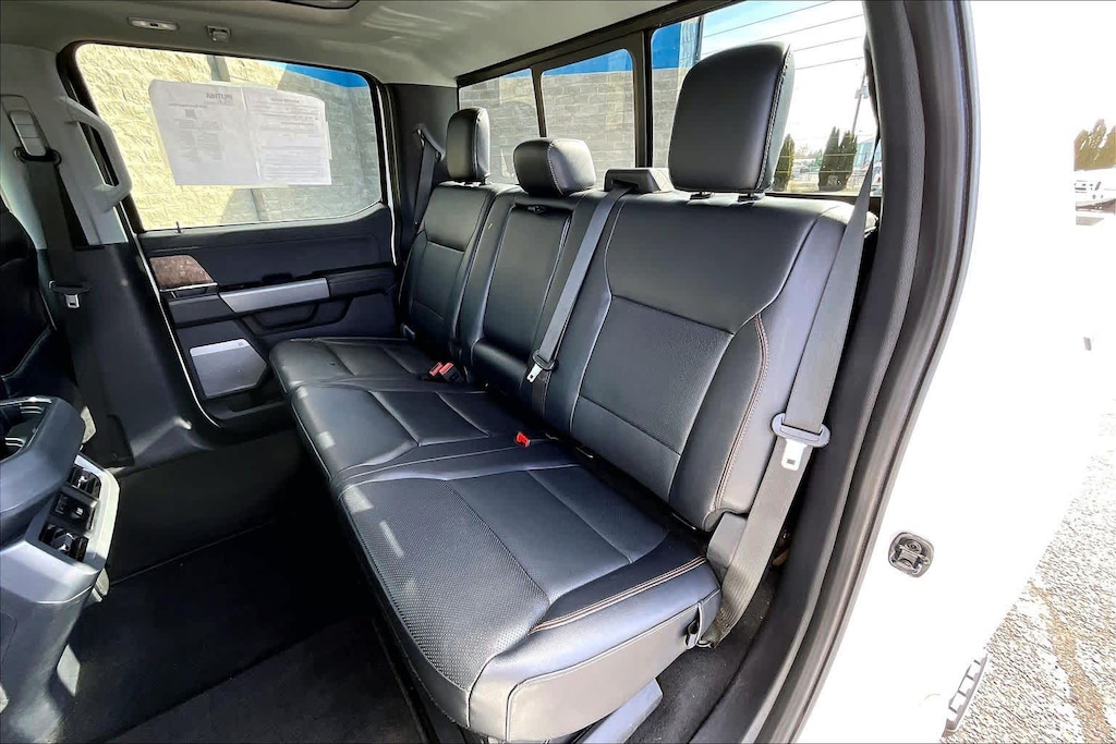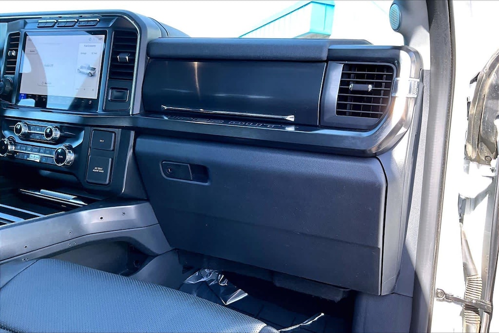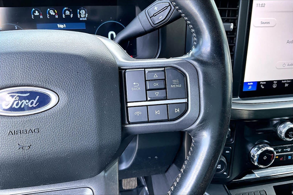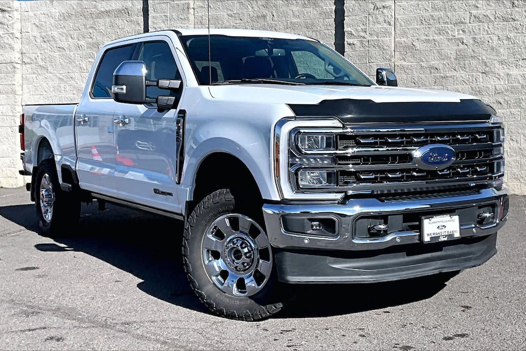LARIAT ULTIMATE PACKAGE Wireless Charging Pad, Front Sensing System, Tailgate Step & Handle, Intelligent Adaptive Cruise Control w/Stop-and-Go, lane centering and speed sign recognition, Radio: B&O Unleashed Sound System by Bang & Olufsen, HD Radio w/14 speakers including subwoofer, Pro Trailer Hitch Assist, Ford Co-Pilot 360 2.0, rear view camera, reverse brake assist and reverse sensing system, Lane-Keeping System, lane-keeping alert, lane-keeping aid and driver alert, Pre-Collision Assist, Automatic Emergency Braking (AEB), pedestrian detection, forward collision warning, dynamic brake support and intersection assist, Post-Collision Braking, Automatic High Beam, BLIS w/Cross-Traffic Alert, trailer coverage, Upfitter Switches (6), Located in overhead console, 4-Way Adjustable Headrests, TWIN PANEL POWER MOONROOF map lights and moonroof switches, CHROME PACKAGE 2 front chrome tow hooks, Unique Chrome Mirror Caps, Tires: LT275/65Rx20E BSW Automatic Transmission (4), Spare may not be the same as road tire, Wheels: 20 Chrome PVD Aluminum, Chrome Door Handles, 6 Angular Bright Anodized Step Bars, Chrome Exhaust Tip, ELECTRONIC-LOCKING W/3.55 AXLE RATIO, TRANSMISSION: TORQSHIFT 10-SPEED AUTOMATIC SelectShift and selectable drive modes: normal, eco, slippery roads, tow/haul and off-road (STD). Ford LARIAT with Oxford White exterior and Black Onyx interior features a 8 Cylinder Engine with 430 HP at 5500 RPM*.