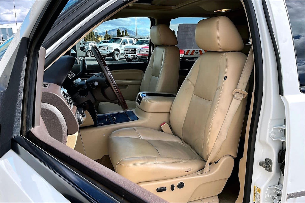 ENGINE, DURAMAX 6.6L TURBO DIESEL V8, B20-DIESEL COMPATIBLE (397 hp [296.0 kW] @ 3000 rpm, 765 lb-ft of torque [1032.8 N-m] @ 1600 rpm), AUDIO SYSTEM WITH NAVIGATION, AM/FM/SIRIUSXM STEREO WITH CD PLAYER 7-inch touchscreen Color Interface Display (CID), 30 gig usable Hard Drive storage space, with navigation and voice recognition, USB port, MP3 playback capability, Radio Data System (RDS), speed-compensated volume, time shift recording capability, TRANSMISSION, ALLISON 1000 6-SPEED AUTOMATIC, ELECTRONICALLY CONTROLLED with overdrive, electronic engine grade braking and tow/haul mode, SUNROOF, POWER with express-open, retracts into roof, WHEELS, 20 (50.8 CM) FORGED POLISHED ALUMINUM, WINDOW, POWER, REAR SLIDING, MIRRORS, OUTSIDE HEATED POWER-ADJUSTABLE VERTICAL CAMPER MANUAL-FOLDING AND EXTENSION, BLACK includes integrated turn signal indicators consisting of 50 square inch flat mirror surface positioned over a 20 square inch convex mirror surface with a common head and lower convex spotter glass (convex glass is not heated or power adjustable). GMC Denali with SUMMIT WHITE exterior and COCOA/LIGHT CASHMERE interior features a 8 Cylinder Engine with 397 HP at 3000 RPM*.