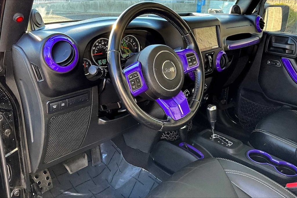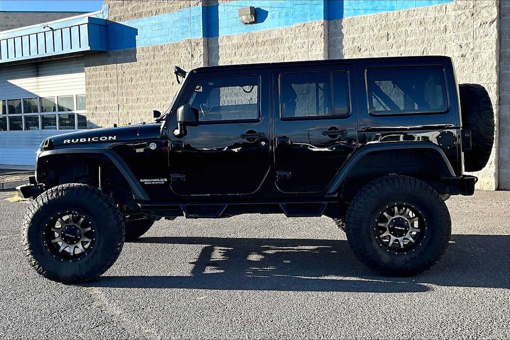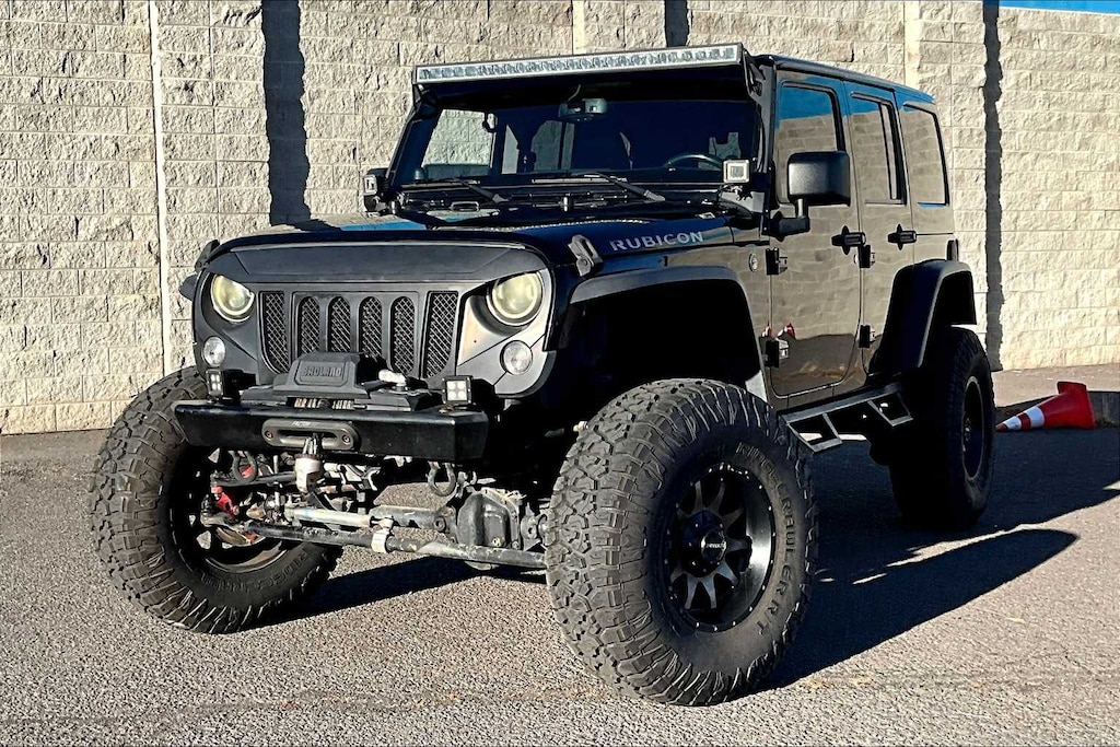 BODY COLOR 3-PIECE HARD TOP If ordering without AEM (Dual Top Group), the black soft top will not be included, Freedom Panel Storage Bag, Rear Window Defroster, Rear Window Wiper/Washer, Delete Sunrider Soft Top, BLACK, LEATHER TRIMMED BUCKET SEATS Front Seat Back Map Pockets, Driver Height Adjuster Seat, Heated Front Seats, TRANSMISSION: 5-SPEED AUTOMATIC (W5A580) Tip Start, Hill Descent Control, RADIO: UCONNECT 430N CD/DVD/MP3/HDD/NAV, 6.5 Touch Screen Display, Remote USB Port, 40GB Hard Drive w/28GB Available, GPS Navigation, SiriusXM Travel Link, CONNECTIVITY GROUP Vehicle Information Center, Remote USB Port, Uconnect Voice Command w/Bluetooth®, Tire Pressure Monitoring Display, SUPPLEMENTAL FRONT SEAT SIDE AIR BAGS, REMOTE START SYSTEM, MAX TOW PACKAGE Class II Receiver Hitch, Trailer Tow w/4-Pin Connector Wiring, AIR CONDITIONING W/AUTO TEMP CONTROL Air Filtering, ENGINE: 3.6L V6 24V VVT (STD). Jeep Rubicon with Black Clearcoat exterior and Black interior features a V6 Cylinder Engine with 285 HP at 6400 RPM*.