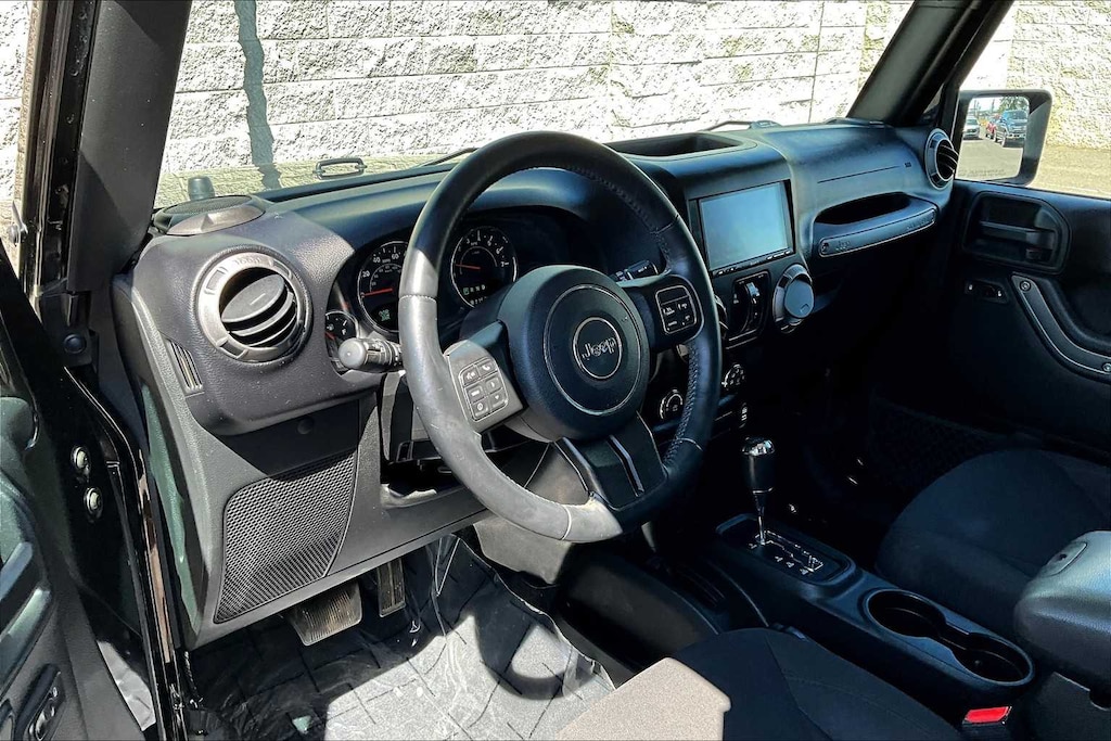 QUICK ORDER PACKAGE 24S Engine: 3.6L V6 24V VVT, Transmission: 5-Speed Automatic (W5A580), Auto Dim Mirror w/Reading Lamp, Front 1-Touch Down Power Windows, Tires: P255/75R17 OWL On/Off Road, Power Heated Mirrors, Wheels: 17 x 7.5 Aluminum, Leather Wrapped Steering Wheel, Chrome/Leather Wrapped Shift Knob, Power Convenience Group, Deep Tint Sunscreen Windows, Security Alarm, Power Locks, Remote Keyless Entry, TRANSMISSION: 5-SPEED AUTOMATIC (W5A580) Tip Start, Hill Descent Control, BLACK 3-PIECE HARD TOP Freedom Panel Storage Bag, Rear Window Defroster, Rear Window Wiper/Washer, Delete Sunrider Soft Top, ALPINE 9-SPEAKER W/ALL WEATHER SUBWOOFER Amplified 552W, CONNECTIVITY GROUP Vehicle Information Center, Remote USB Port, Uconnect Voice Command w/Bluetooth®, Tire Pressure Monitoring Display, ANTI-SPIN DIFFERENTIAL REAR AXLE, SIRIUS SATELLITE RADIO, For More Info Call 888-539-7474, ENGINE: 3.6L V6 24V VVT (STD). Jeep Sport with Black Clearcoat exterior and Black interior features a V6 Cylinder Engine with 285 HP at 6400 RPM*.