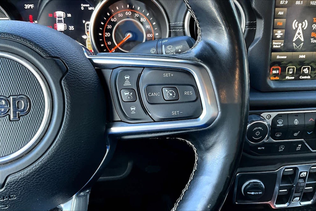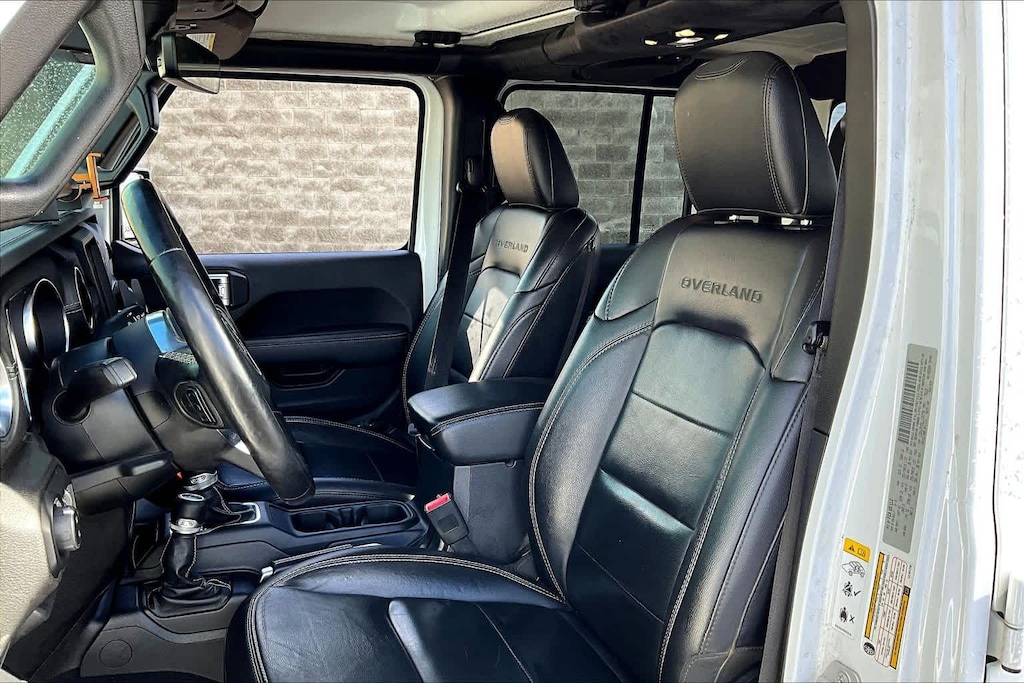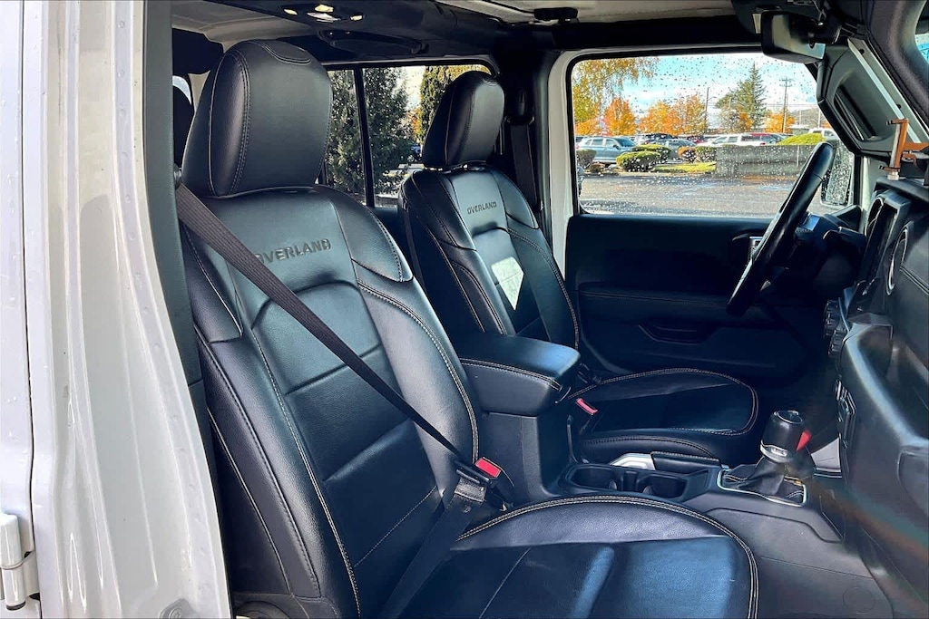 TRANSMISSION: 8-SPEED AUTOMATIC (850RE) Tip Start, Transmission Skid Plate, Selec-Speed Control, 8.4 RADIO & PREMIUM AUDIO GROUP Emergency/Assistance Call, SiriusXM Traffic Plus, Alpine Premium Audio System, HD Radio, Radio: Uconnect 4C Nav w/8.4 Display, Rear View Auto Dim Mirror, For Details, Visit DriveUconnect.com, 1-Year SiriusXM Guardian Trial, SiriusXM Travel Link, BLACK, LEATHER TRIMMED BUCKET SEATS Premium Wrapped I/P Bezel, Leather Wrapped Shift Knob, Full Length Floor Console Premium Armrest, Leather Wrapped Park Brake Handle, Rear Armrest w/Cupholder Seat, BLACK 3-PIECE HARD TOP Freedom Panel Storage Bag, Rear Window Defroster, Rear Sliding Window, No Soft Top, LED LIGHTING GROUP Daytime Running Lamps LED Accents, LED Park Turn Lamps, Front LED Fog Lamps, LED Reflector Headlamps, LED Taillamps, COLD WEATHER GROUP Heated Steering Wheel, Heated Front Seats, SAFETY GROUP ParkSense Rear Park Assist System, Blind Spot & Cross Path Detection, ADVANCED SAFETY GROUP Advanced Brake Assist, Full Speed Forward Collision Warning Plus, ANTI-SPIN DIFFERENTIAL REAR AXLE, REMOTE START SYSTEM, SPRAY IN BEDLINER, TRAILER TOW PACKAGE Trailer Hitch Zoom, Class IV Hitch Receiver, Heavy Duty Engine Cooling, 240 Amp Alternator, ENGINE: 3.6L V6 24V VVT UPG I W/ESS (STD). Jeep Overland with Bright White Clearcoat exterior and Black interior features a V6 Cylinder Engine with 285 HP at 6400 RPM*.