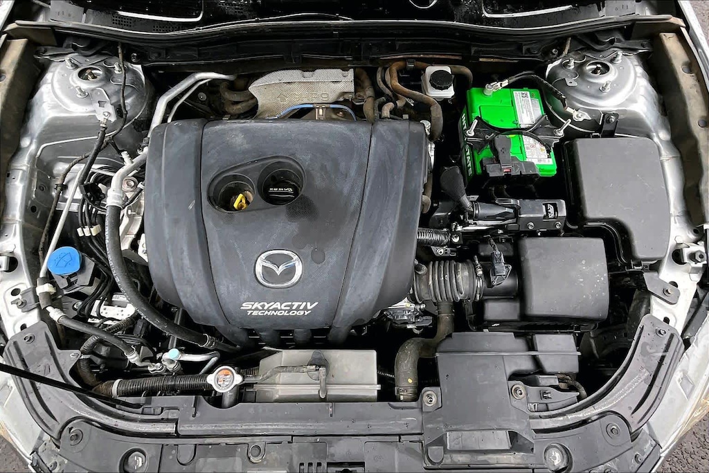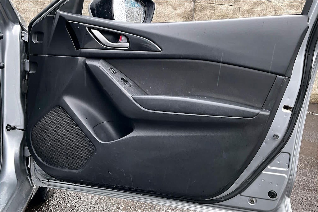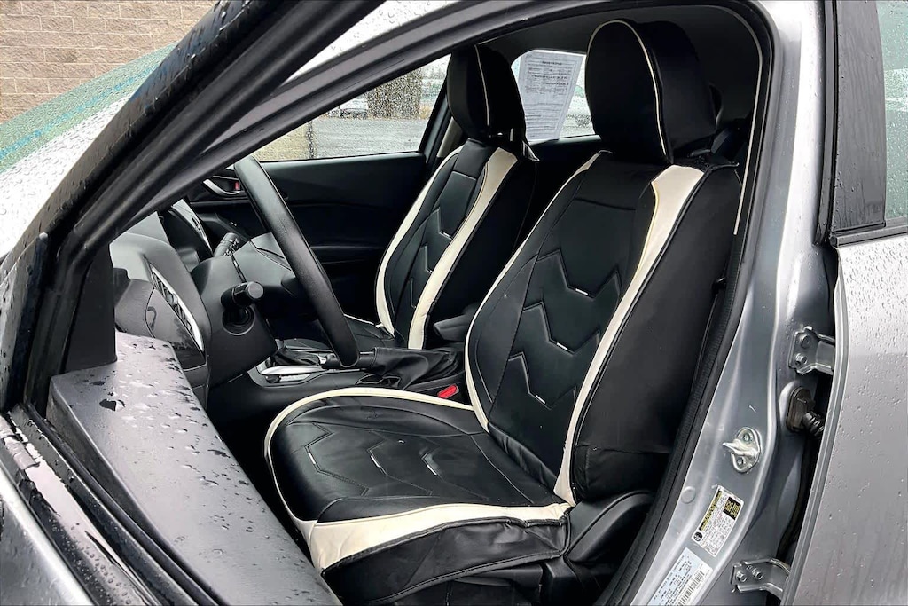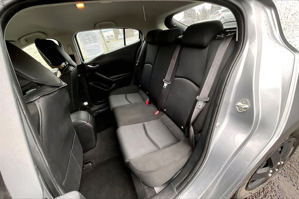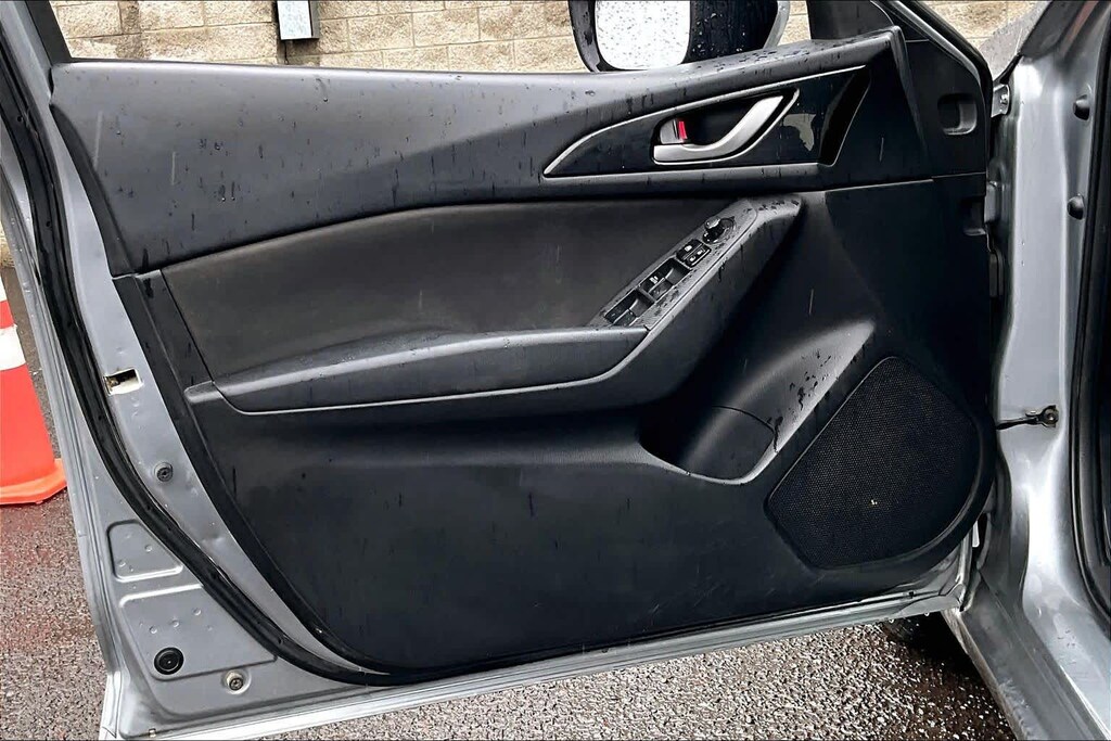 iPod/MP3 Input, Bluetooth®, CD Player. Rear Spoiler, MP3 Player, Keyless Entry, Steering Wheel Controls, Child Safety Locks, Electronic Stability Control, Bucket Seats. Mazda Mazda3 i Sport with Liquid Silver Metallic exterior and Black interior features a 4 Cylinder Engine with 155 HP at 6000 RPM*.