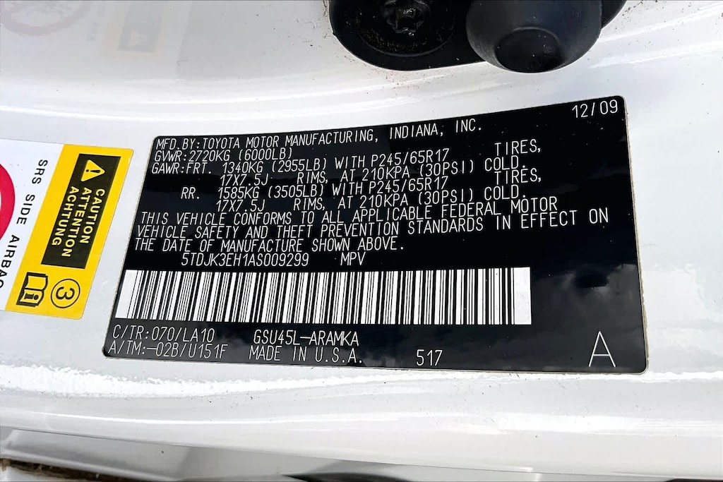 Leather Seats, Third Row Seat, Rear Air. Rear Spoiler, MP3 Player, Sunroof, 4x4, Aluminum Wheels, Keyless Entry, Privacy Glass. Toyota SE with Blizzard Pearl exterior and ASH interior features a V6 Cylinder Engine with 270 HP at 6200 RPM*.
